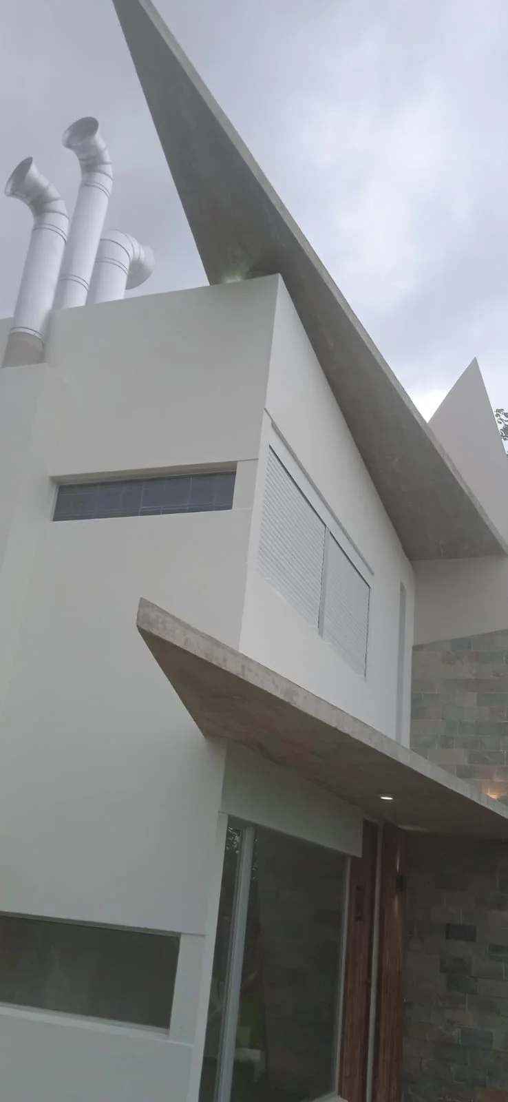 Casa con líneas dinámicas y con un estilo rústico en su presentación.