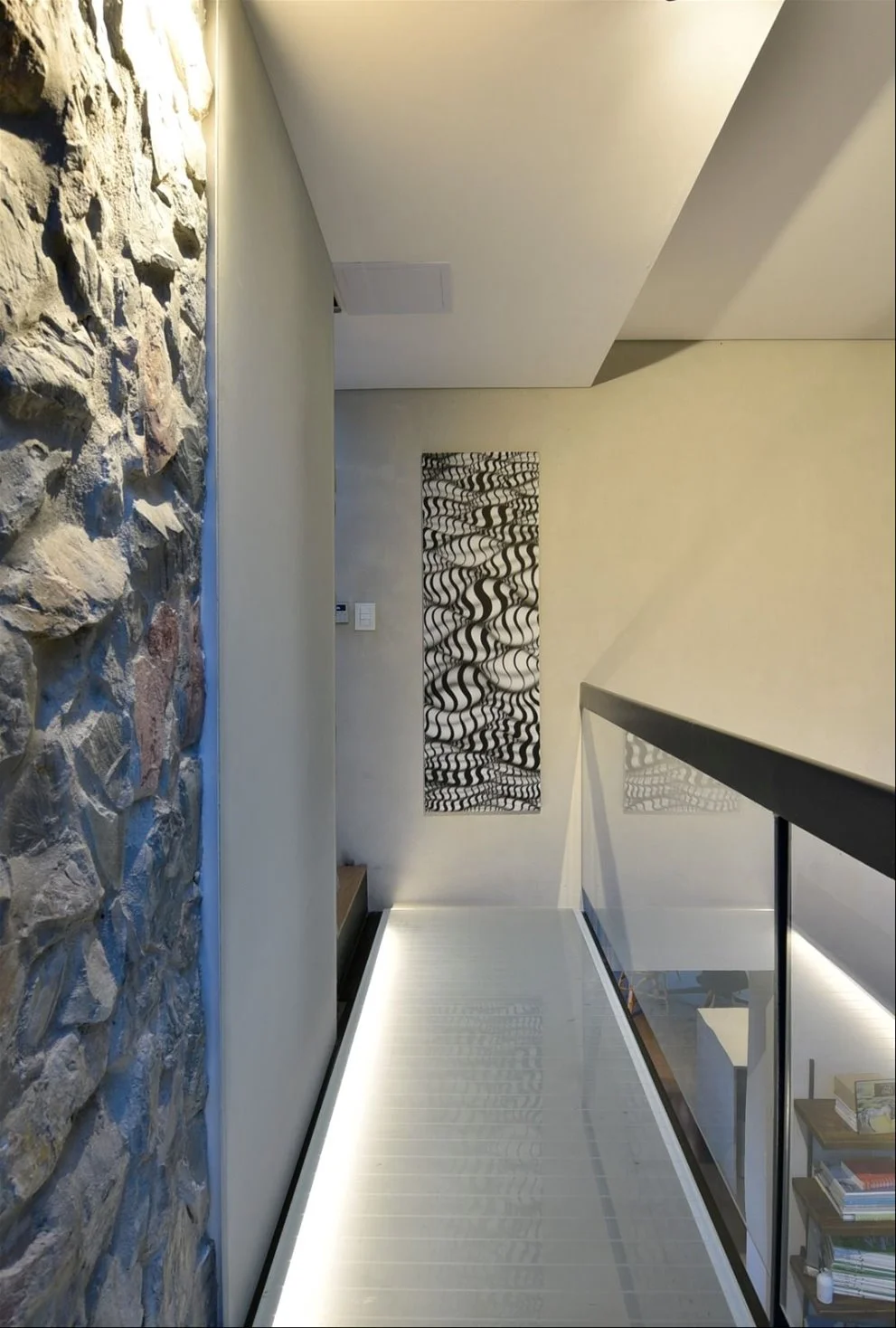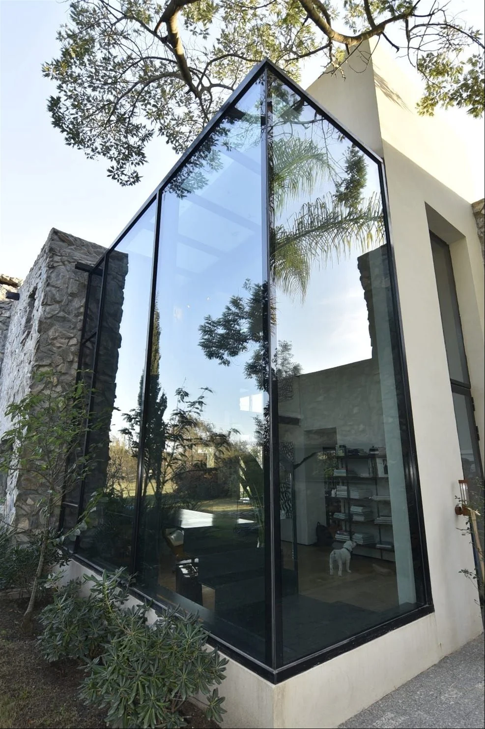 La propiedad cuenta en PB. con gran recibidor vidriado de doble altura con escalera suspendida.