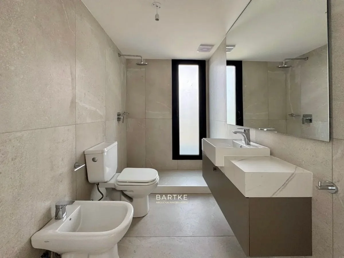 Cocina equipada con horno, anafe y campana. Baño equipado con accesorios y mampara. Previsión para lavarropas. Cortinas de enrollar motorizadas. Aires acondicionados y calefacción.