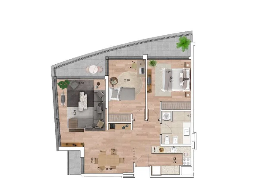 El apartamento cuenta con 73,6 metros internos y 13,2 de terraza.