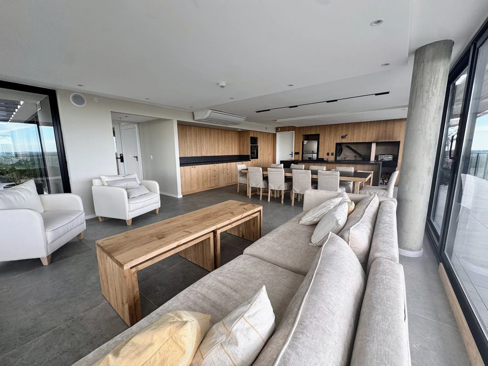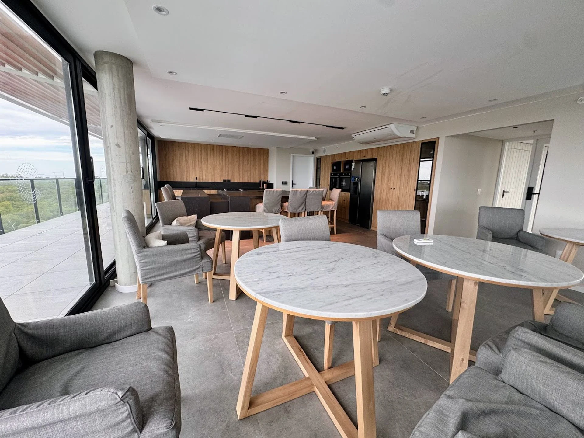 Equipado con Horno, campana, anafe, 2 aires acondicionados, cortinas, caldereta a gas para el agua caliente y calefacción por loza radiente individual.