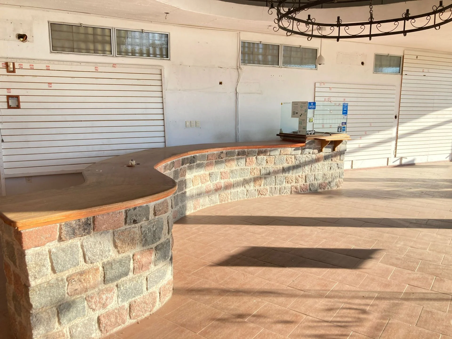 • Mostrador con mesada de piedra ya instalado, ideal para sector de cajas o atención al cliente.