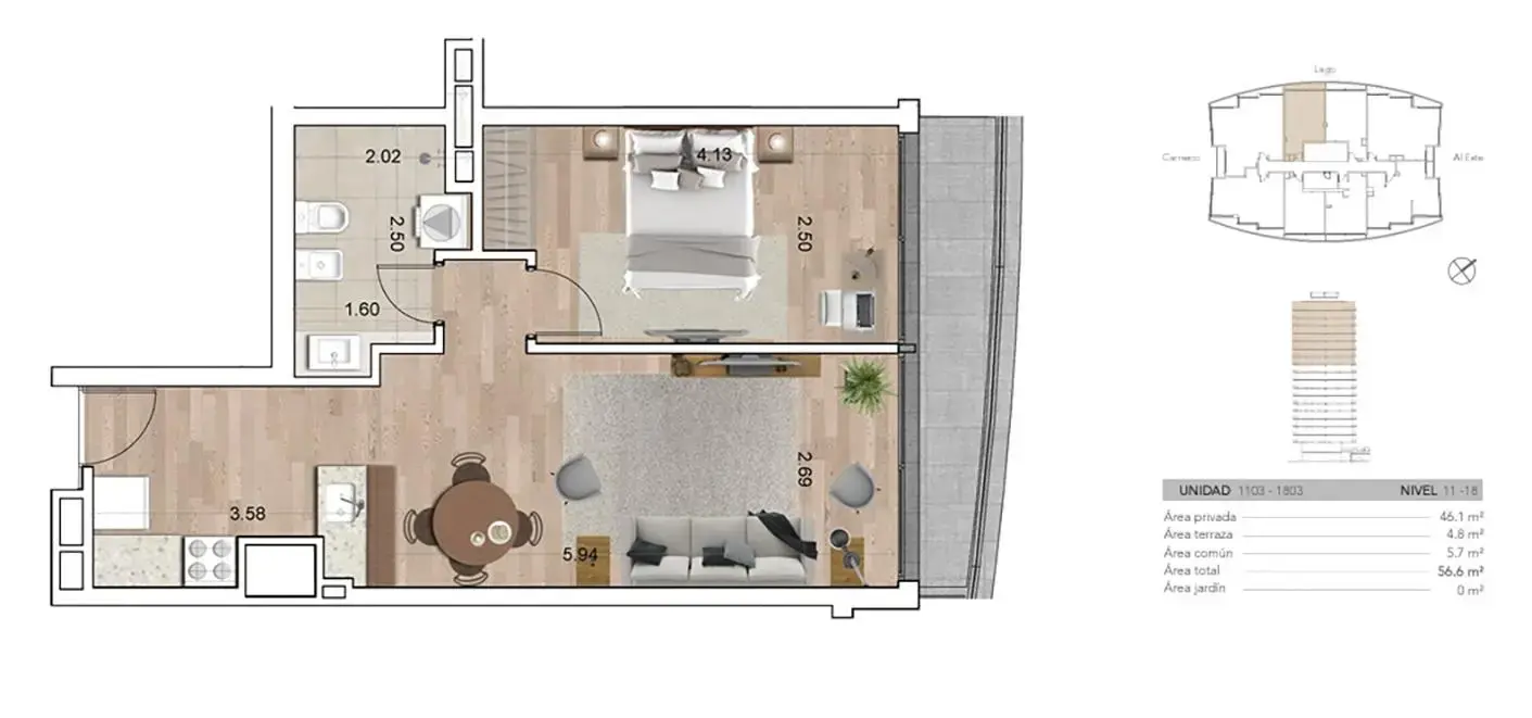 Apartamento a estrenar con excelentes vistas despejadas al lago, piso alto.