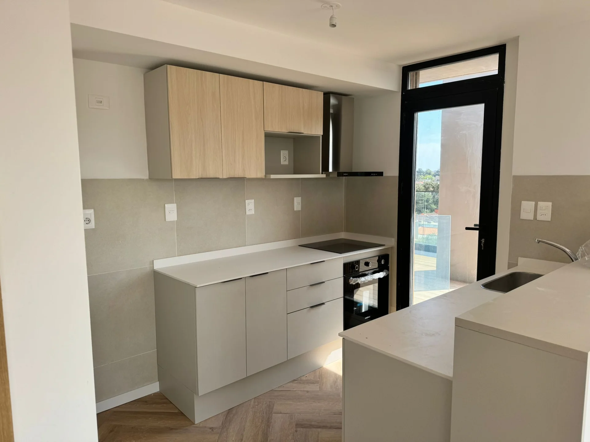 El apartamento en alquiler a estrenar cuenta con 2 dormitorios, orientado hacia el Norte, cuenta con living-comedor, terraza, cocina integrada, con mobiliario bajo mesada y aéreos. Equipado con horno, anafe y campana. Baño equipado con accesorios y mampara. Previsión para lavarropas y calefón.