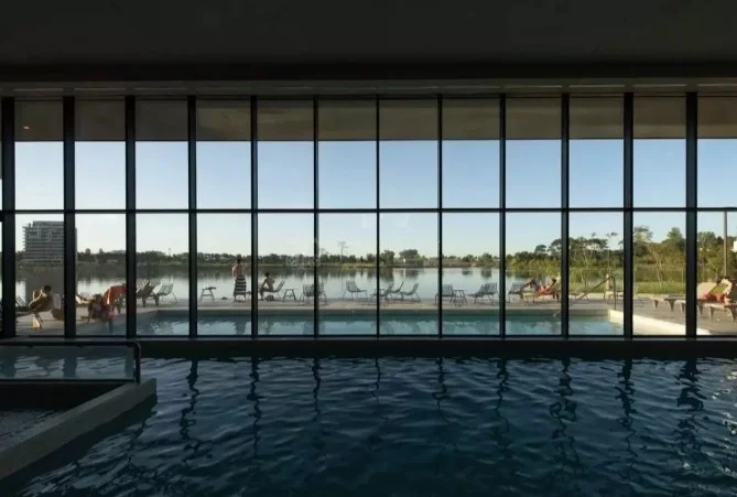 El edificio es un verdadero oasis de entretenimiento y bienestar, ofreciendo un gimnasio totalmente equipado, áreas de barbacoa, un espacio de coworking, una cocina gourmet y múltiples opciones de piscina, tanto cerrada como abierta. Los residentes pueden disfrutar de la playa, un muelle privado y actividades acuáticas como kayak y standup paddle. La orientación sur del apartamento garantiza una luz natural abundante durante todo el día, creando un ambiente acogedor y relajante. Con características adicionales como WiFi, seguridad, ascensor, y la posibilidad de tener mascotas, este apartamento se presenta como una opción ideal para quienes buscan un estilo de vida sofisticado y cómodo, dentro de un entorno seguro y atractivo.