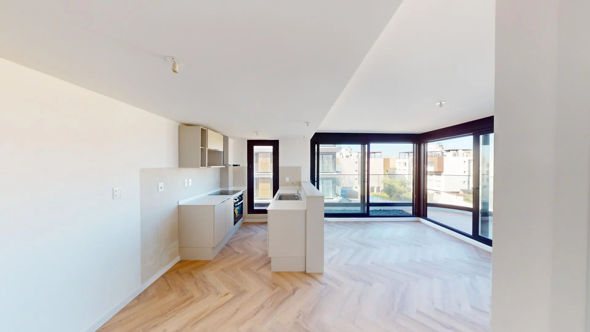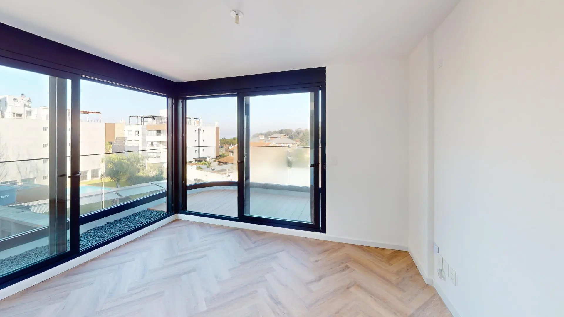 Pisos de vinílico de alto transito Verona, cortinas de enrollar motorizadas y previsión para aire acondicionado.