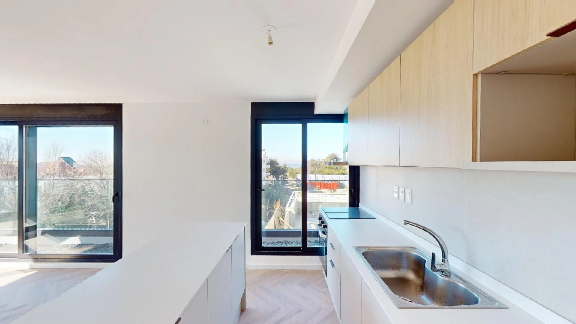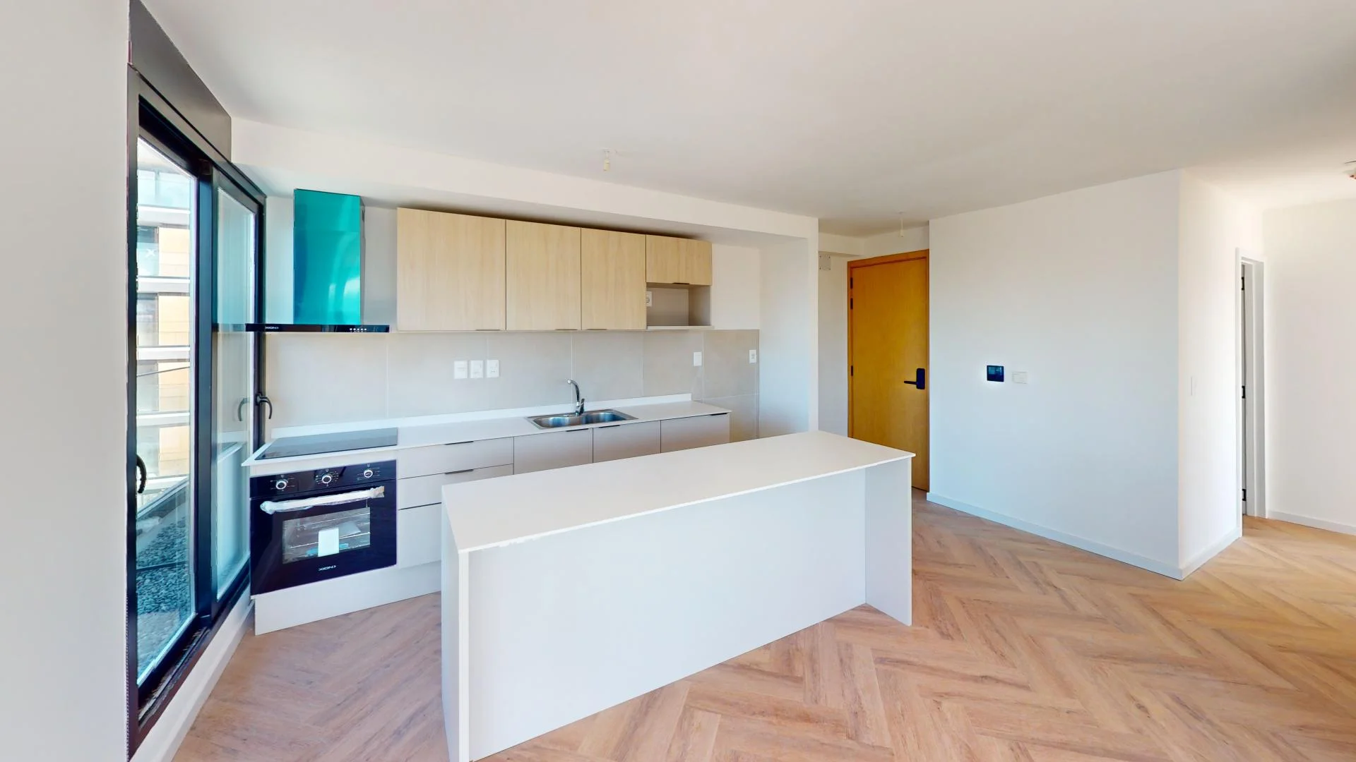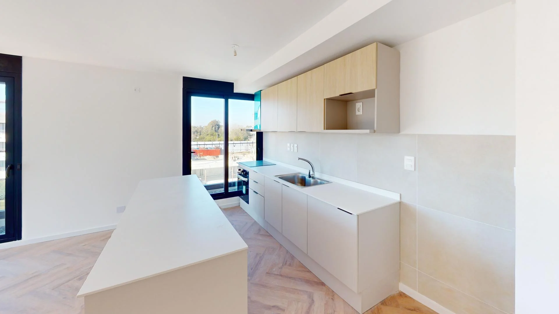 El apartamento en alquiler a estrenar cuenta con 2 dormitorios, orientado hacia el Oeste, cuenta con living-comedor, terraza, cocina integrada, con mobiliario bajo mesada y aéreos. Equipado con horno, anafe y campana y baño también equipado. Previsión para lavarropas y calefón.