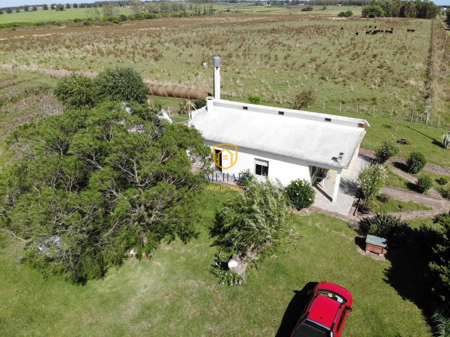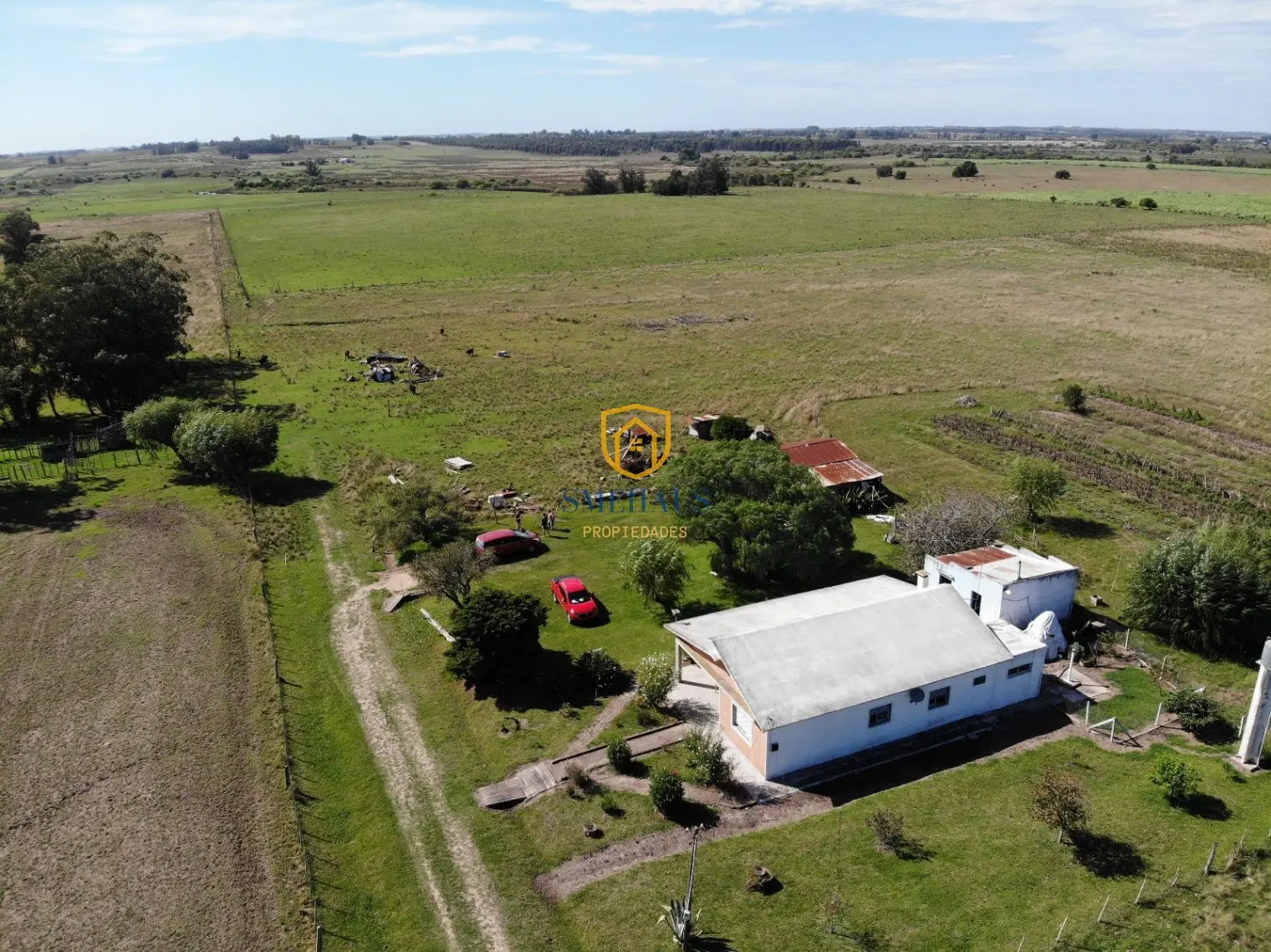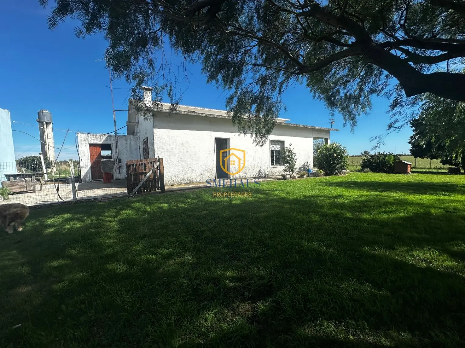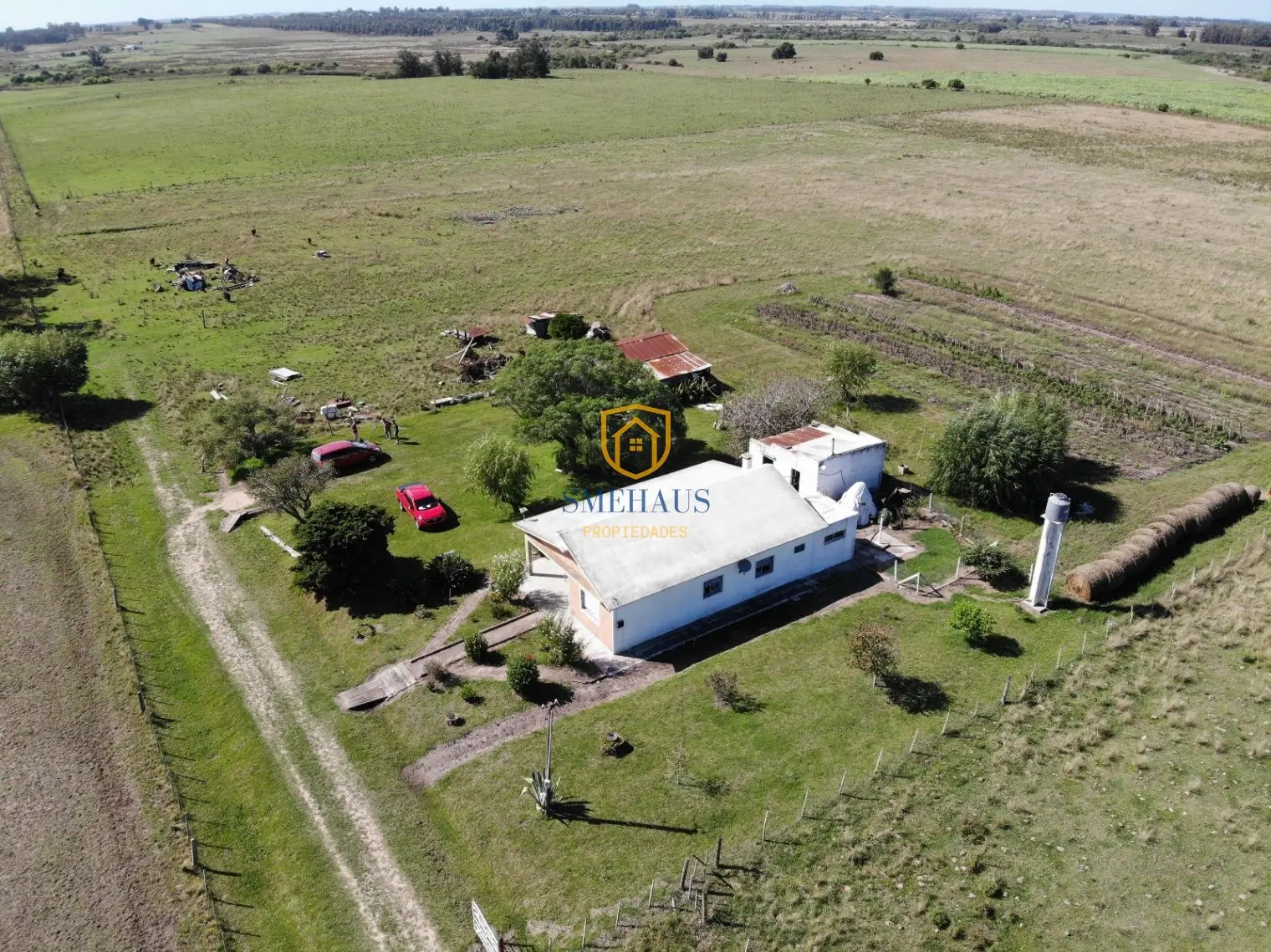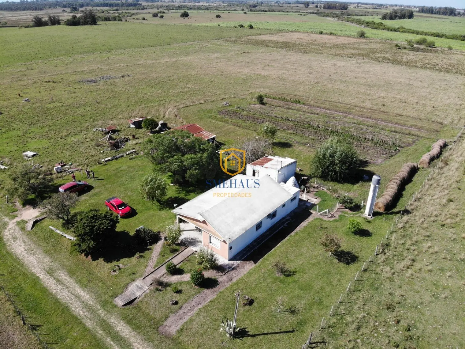 Además, La propiedad cuenta con una casa de 3 dormitorios con living, cocina, luz y agua de pozo de 23 metros de profundidad con bomba instalada y funcionando. La casa se encuentra en excelente estado y lista para vivir, su techo es de planchada. Cuenta también con un galpón para herramientas, un tractor en funcionamiento y otra pieza fuera de la casa que se usa como depósito.