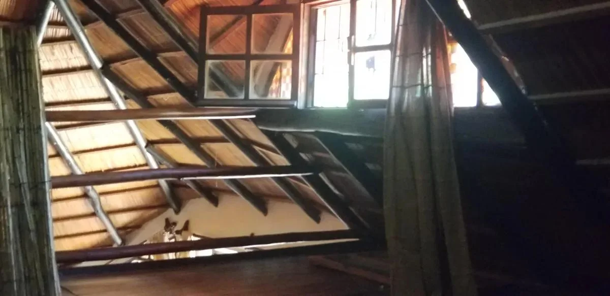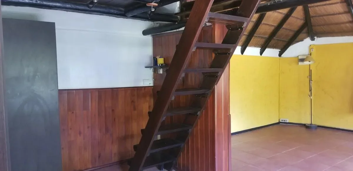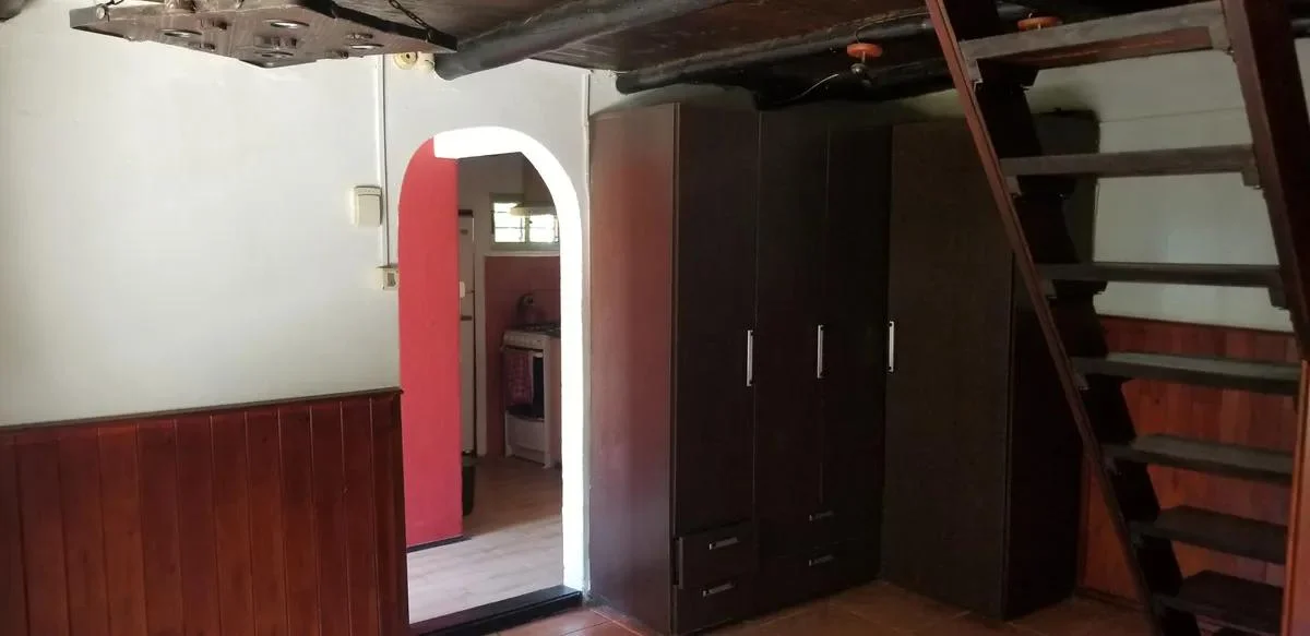 El dormitorio se ubica en un cómodo entrepiso, que aporta privacidad y mantiene el estilo rústico de madera que caracteriza toda la construcción. El baño completo se encuentra en la planta baja, en impecable estado.