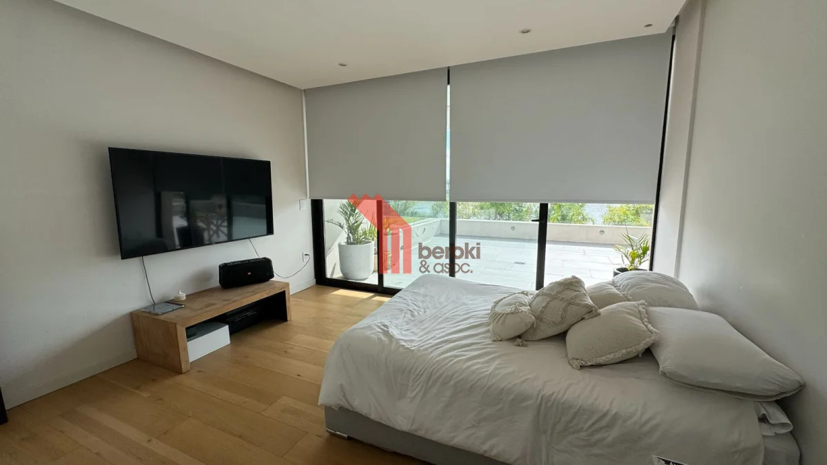 En planta alta se desarrollan dos dormitorios en suite con vestidor, ambos con salida a terraza y vista abierta. Además, cuenta con escritorio independiente y estar o playroom.