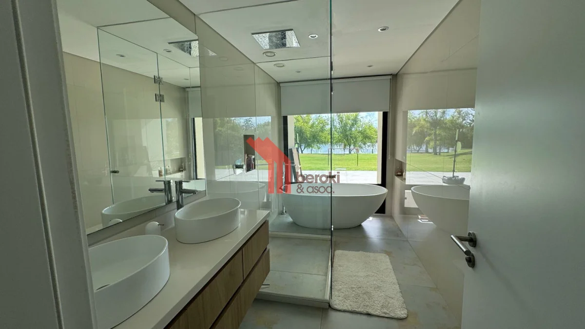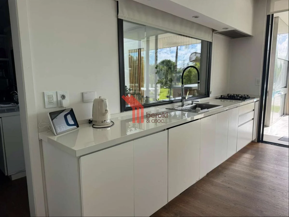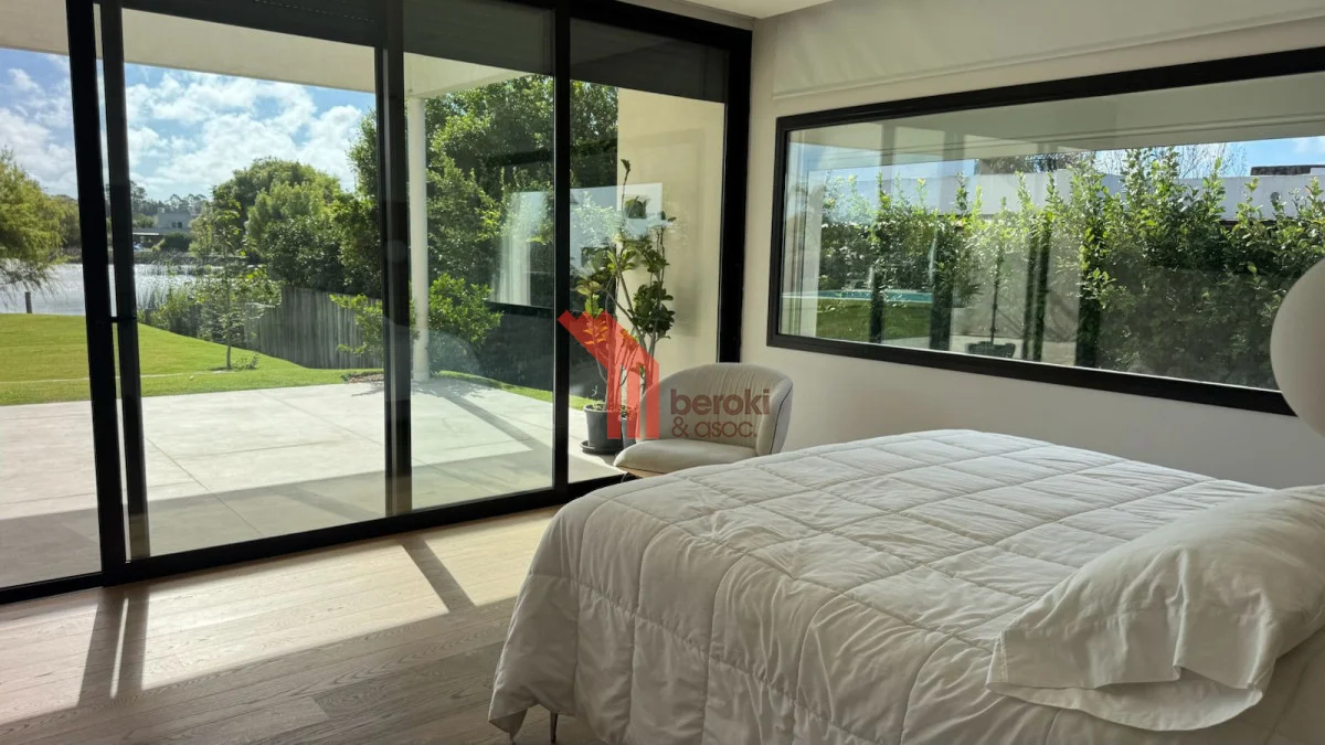 La propiedad cuenta con 515 m² edificados totales y se destaca por su distribución funcional, buena orientación y ambientes amplios con excelente ingreso de luz natural. Los espacios principales se vinculan directamente con el exterior a través de grandes aberturas, generando una integración fluida con el jardín y la vista al lago.