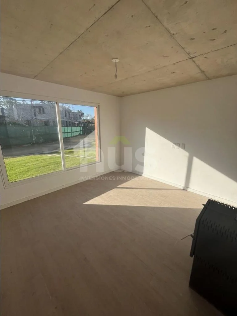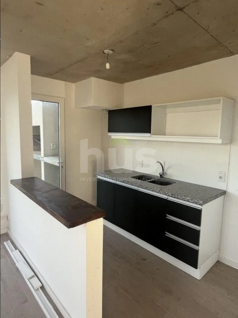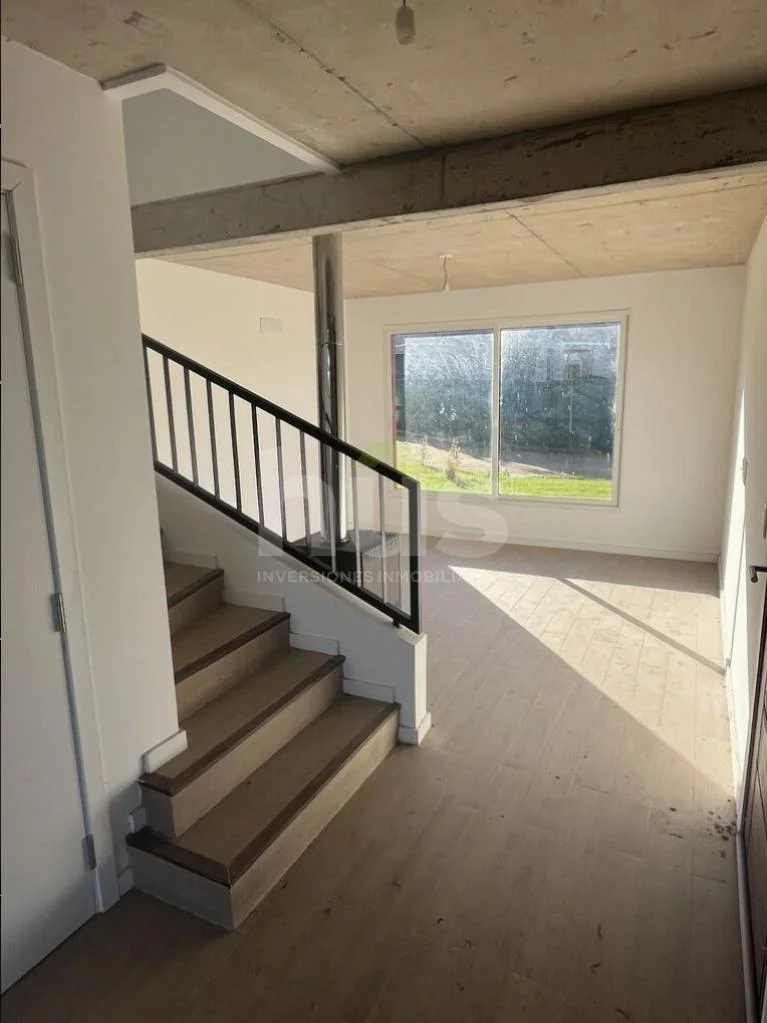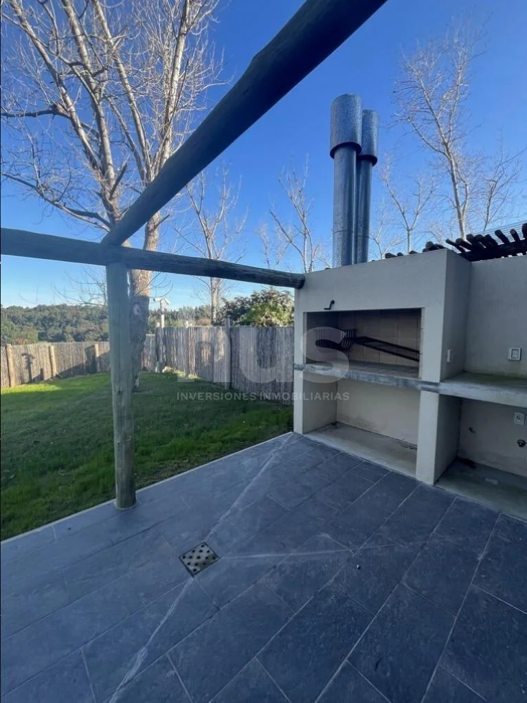 Hall de entrada, living, baño social, cocina integrada con barra al estar y salida a jardín con parrillero.