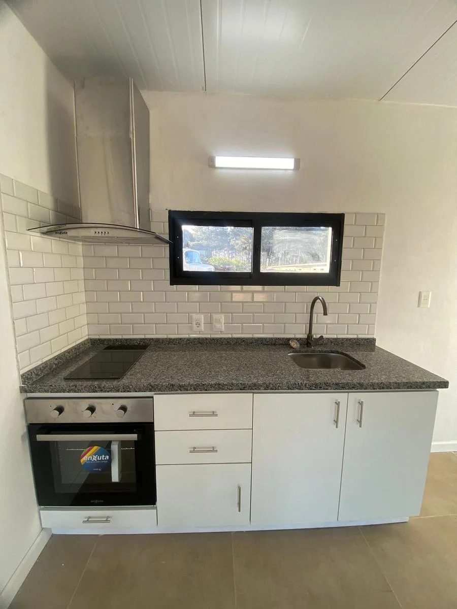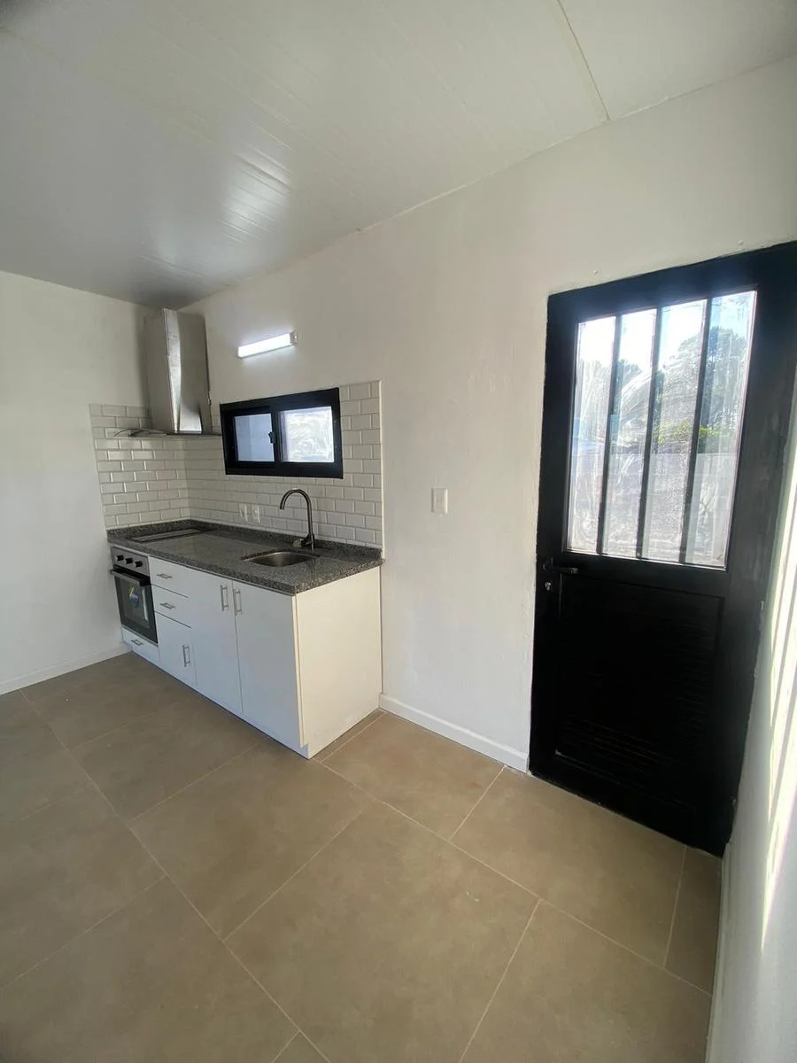 Cuenta con cocina equipada con anafe eléctrico, campana nueva y mesada con muebles bajo mesada. El fondo dispone de conexión para lavarropas y calefón, ideal para aprovechar como espacio de lavandería o pequeño patio.
