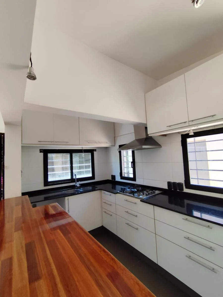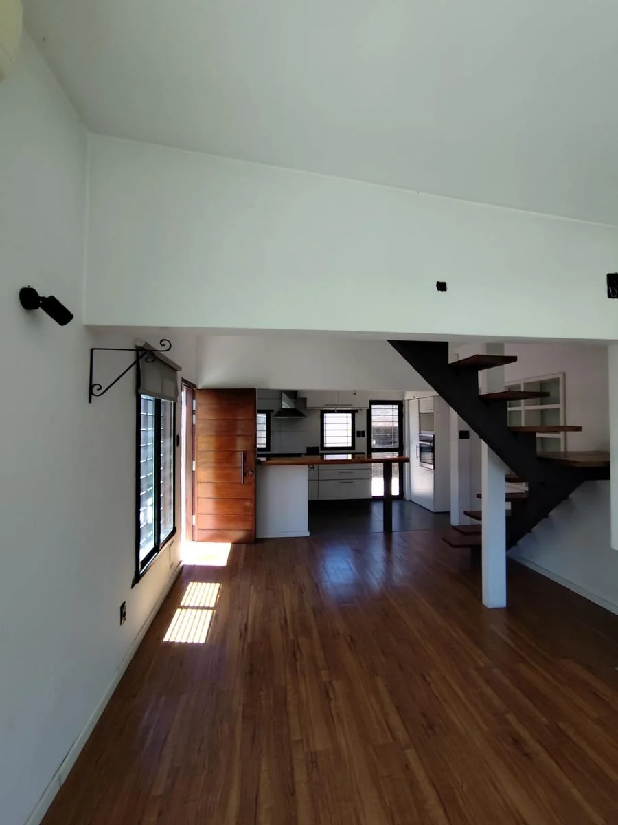 La vivienda es una sólida construcción dúplex de gran comodidad y funcionalidad. En planta baja cuenta con un living comedor muy amplio, luminoso y equipado con una estufa de alto rendimiento que brinda un ambiente cálido durante todo el invierno. La cocina integrada es semiequipada y presenta una distribución práctica con barra, anafe, horno empotrado y muebles aéreos y bajo mesada hechos a medida en maderas de excelente calidad. En esta planta también se encuentran dos baños, uno social y otro completo, junto a dos espacios que podrían funcionar como dos dormitorios o escritorios .