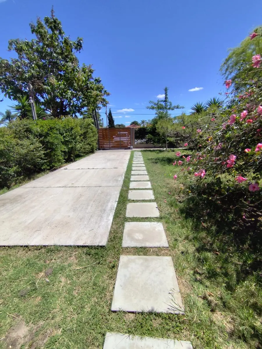 El terreno es amplio y totalmente parquizado, con un jardín cuidado, sistema de riego preparado para activar y un portón automatizado que permite el ingreso de varios vehículos. El frente presenta un entorno verde muy agradable, acompañado de un camino de piedras que conduce hacia la casa, creando una bienvenida cálida y armónica.