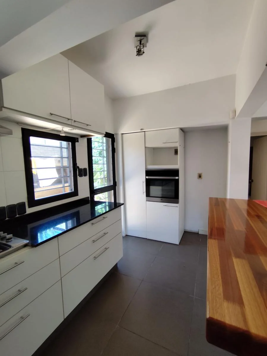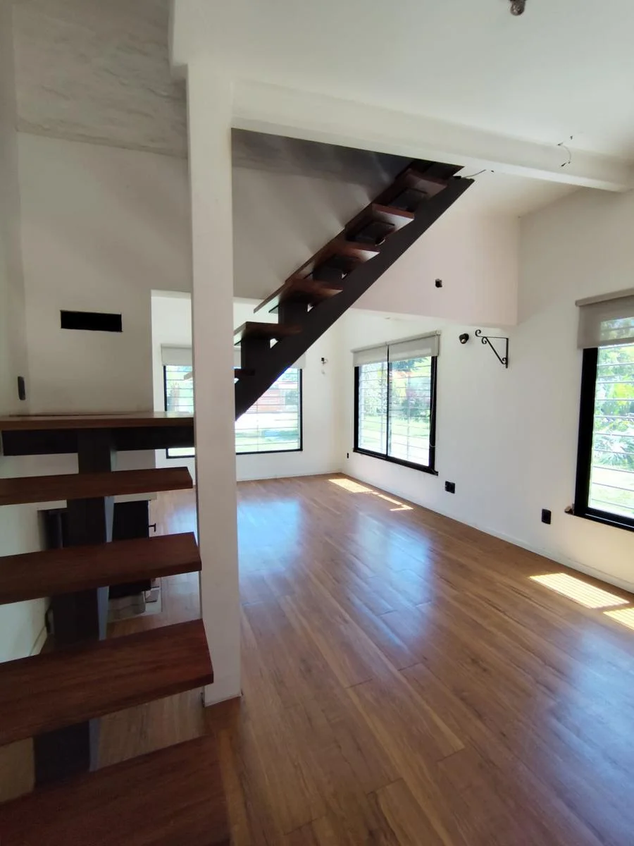 La vivienda es una sólida construcción dúplex de gran comodidad y funcionalidad. En planta baja cuenta con un living comedor muy amplio, luminoso y equipado con una estufa de alto rendimiento que brinda un ambiente cálido durante todo el invierno. La cocina integrada es semiequipada y presenta una distribución práctica con barra, anafe, horno empotrado y muebles aéreos y bajo mesada hechos a medida en maderas de excelente calidad. En esta planta también se encuentran dos baños, uno social y otro completo, junto a dos espacios que podrían funcionar como dos dormitorios o escritorios .