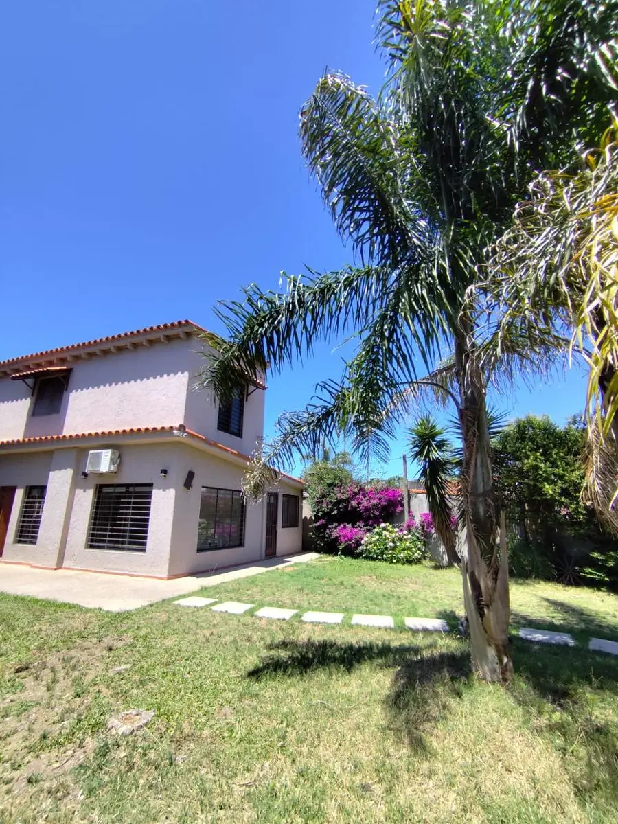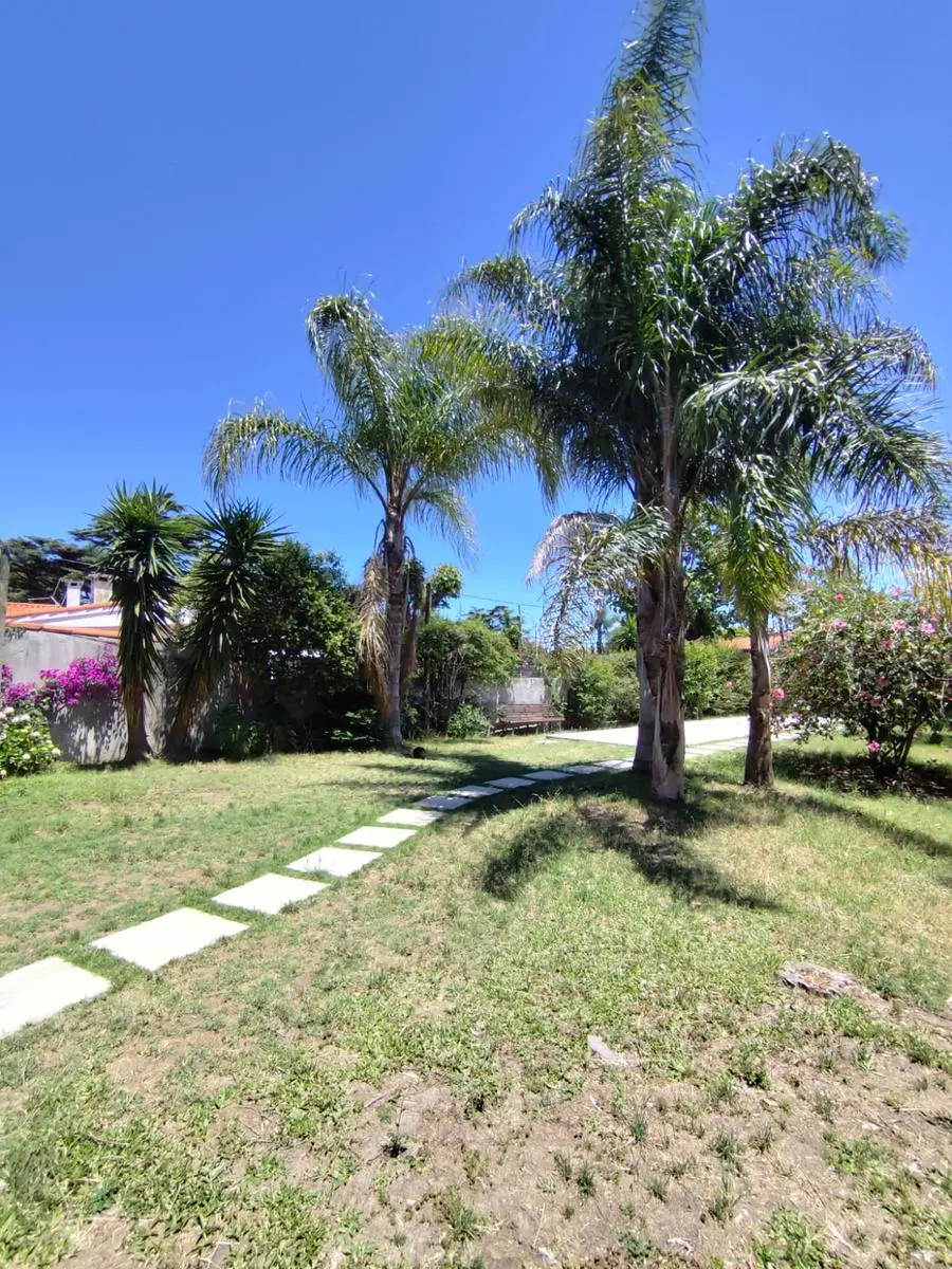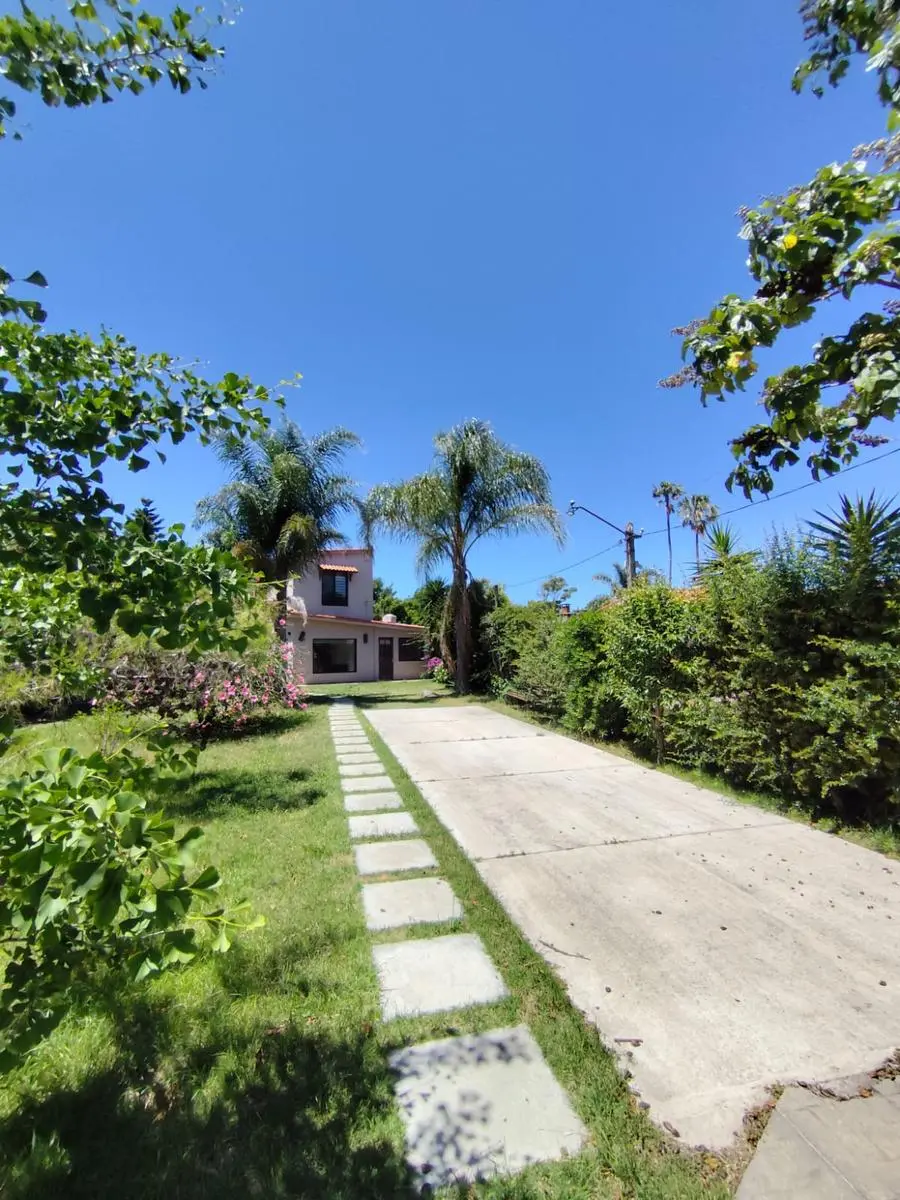 El terreno es amplio y totalmente parquizado, con un jardín cuidado, sistema de riego preparado para activar y un portón automatizado que permite el ingreso de varios vehículos. El frente presenta un entorno verde muy agradable, acompañado de un camino de piedras que conduce hacia la casa, creando una bienvenida cálida y armónica.