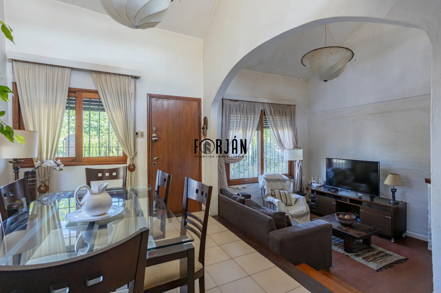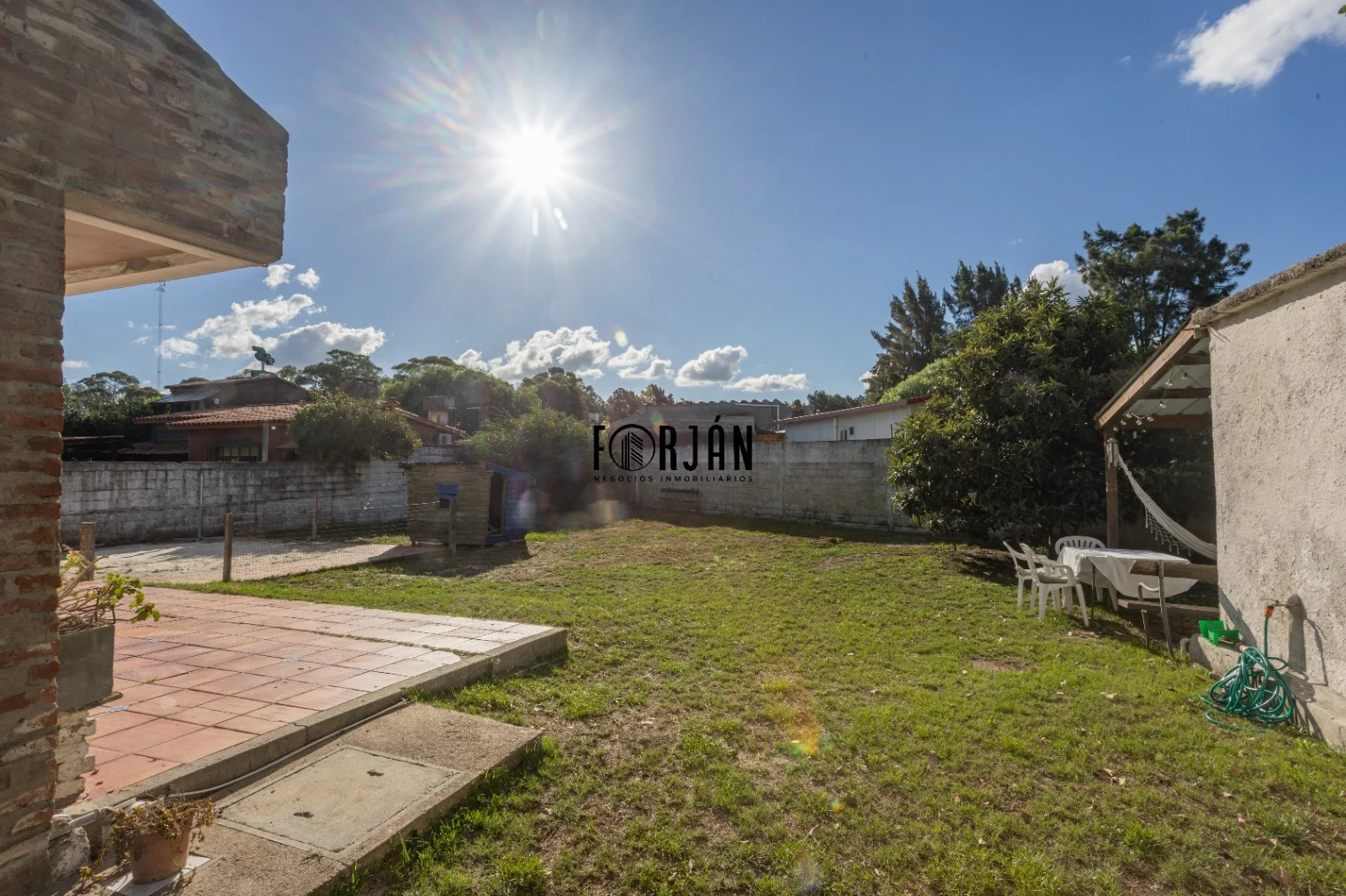 El exterior de la propiedad incluye un hermoso jardín con reja y portón automático al frente, tanto peatonal como para los coches. En el jardín del fondo hallamos una práctica parrilla techada para disfrutar de asados al aire libre.