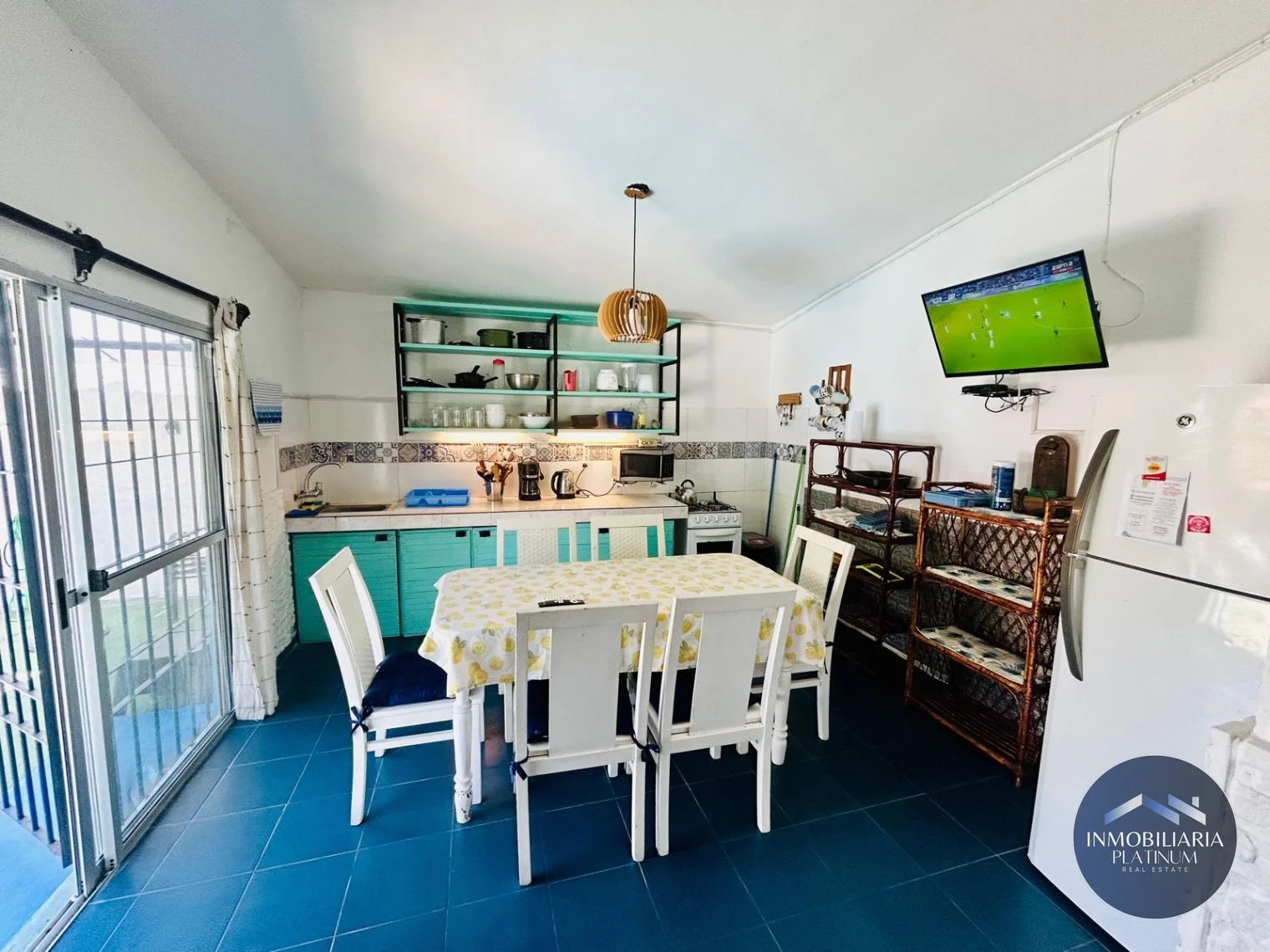 La casa tiene la siguiente distribución 1 dormitorio y medio en la casa principal y después un apartamento con baño al fondo. Su orientación oeste permite disfrutar de luminosos atardeceres. Entre las características que hacen de esta propiedad un lugar especial, se destacan el aire acondicionado, internet, agua corriente, luz, WiFi, alarma, un acogedor patio con chimenea y una piscina ideal para los días de calor. Además, la propiedad dispone de un living y un comedor espaciosos, así como una parrilla que invita a compartir momentos inolvidables con familiares y amigos. La cochera es descubierta, facilitando el acceso y la movilidad.