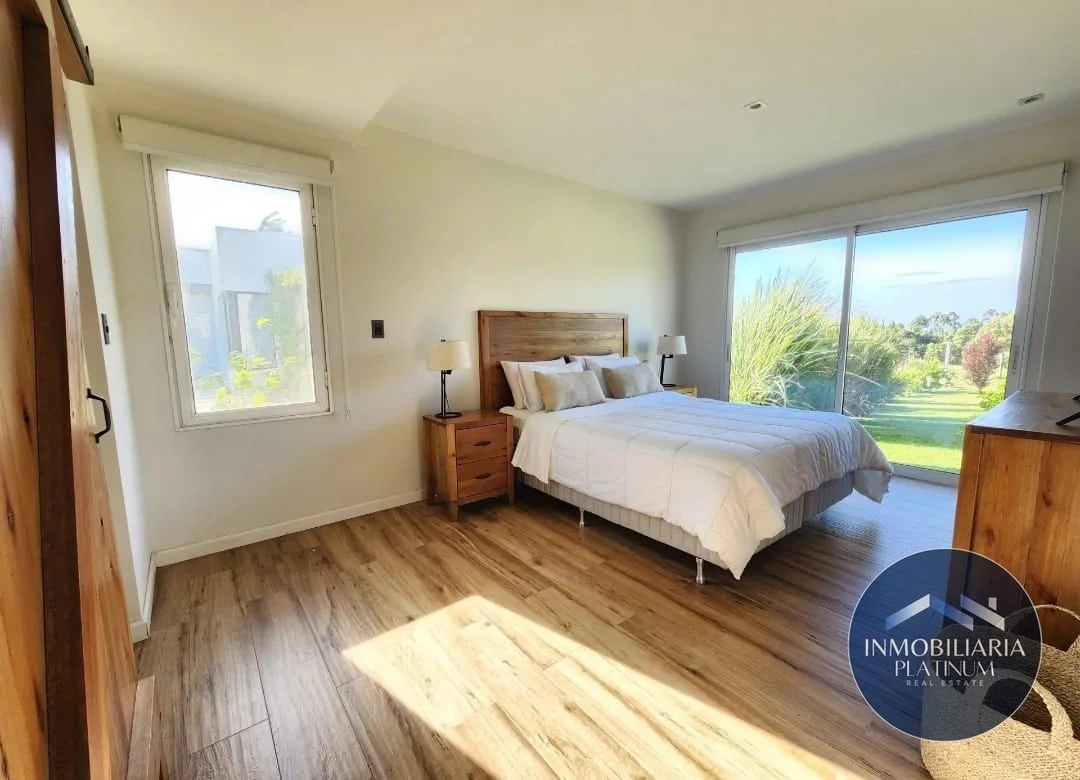 Los espacios exteriores son ideales para el disfrute y el entretenimiento, incluyendo una barbacoa con parrillero de construcción tradicional, horno a leña con pérgola cubierta, área de servicios con tendedero y depósito, cochera doble con pérgola y una espectacular piscina con clorador de sal Akesse, deck integrado y bomba de calor inverter. Este proyecto, diseñado por el renombrado estudio de Arquitectos Hughes & Presno y ejecutado por BA Construcciones, cuenta con una garantía de 6 años. La construcción es de calidad superior, con platea de hormigón armado y muros de ladrillos de hormigón celular de alta eficiencia térmica y acústica. La casa está equipada con agua caliente central a gas, equipos frío-calor wifi inverter en todos los ambientes, cerramientos de doble vidrio hermético y cortinas blackout Harveys incluidas, además de revestimientos y porcelanatos españoles.