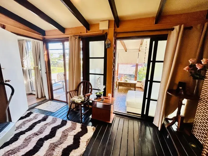 Sala de estar con jacuzzi y otro living estilo feng shui.