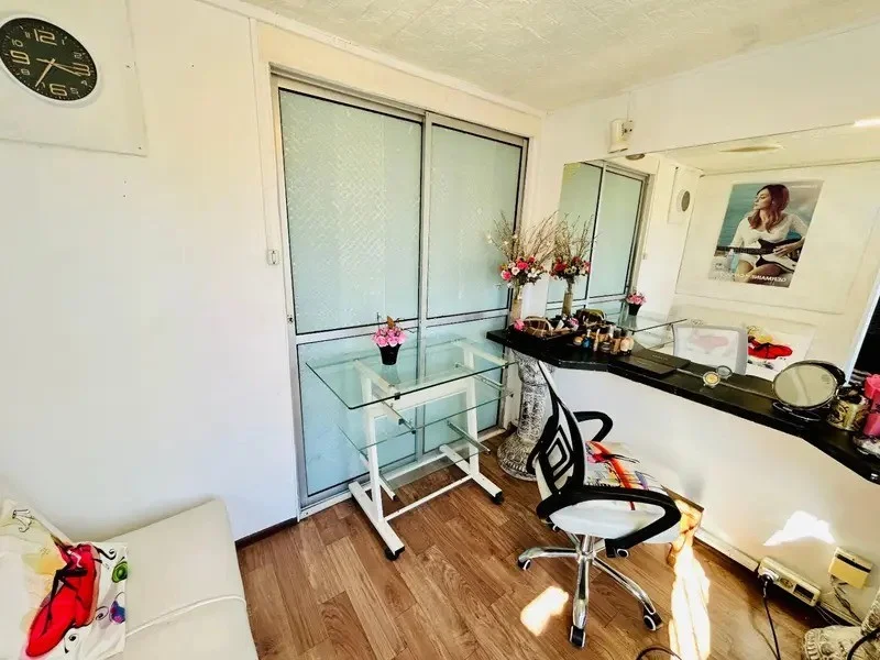 Dormitorio adaptado como salón de belleza, ideal para negocio.