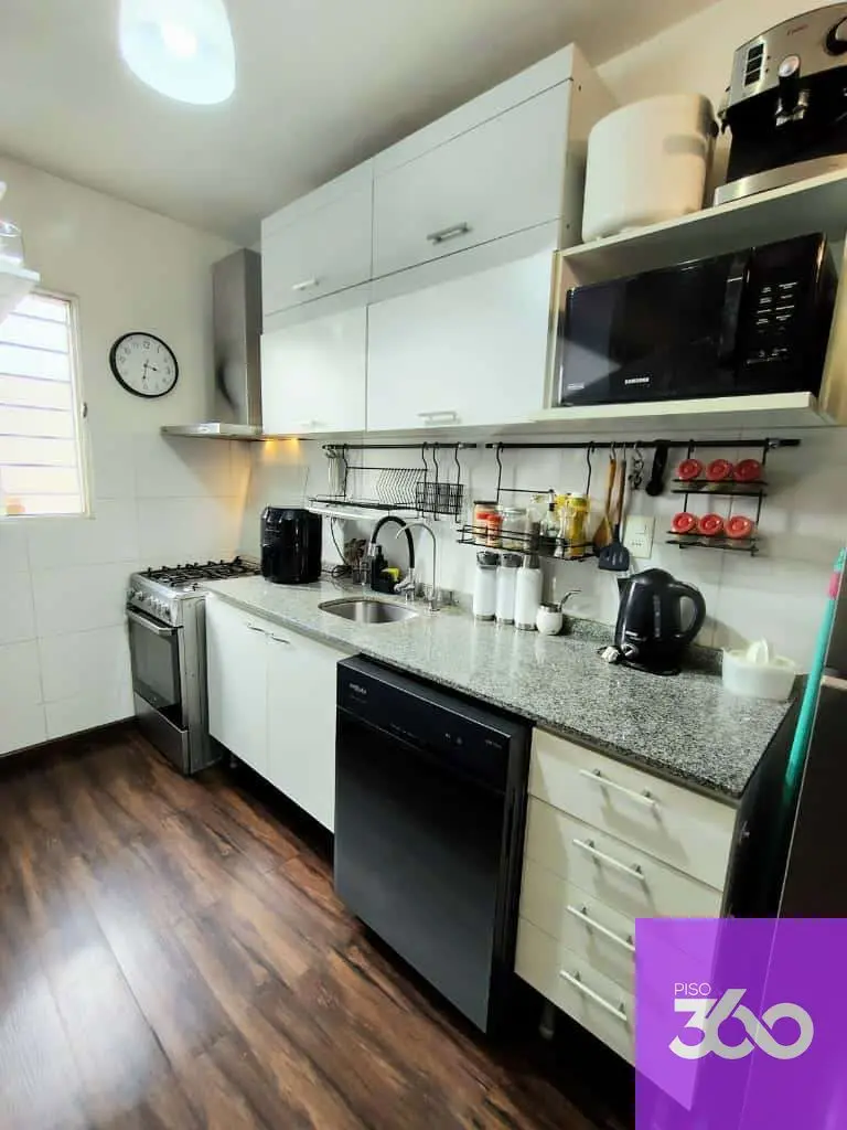 La vivienda cuenta con dos dormitorios, calefacción mediante aires acondicionados, y ofrece excelente iluminación y ventilación, así como vistas al entorno. El baño completo está totalmente equipado, y la cocina integrada resalta por su modernidad y funcionalidad, incluyendo conexión para lavarropas. El amplio y confortable living-comedor también dispone de aire acondicionado, complementado por una cochera privada para un vehículo y un patio que garantiza horas de sol y buena ventilación. La construcción de hormigón armado proporciona óptima aislación térmica y acústica, y las áreas de cocina, baño y patio están a nuevo.