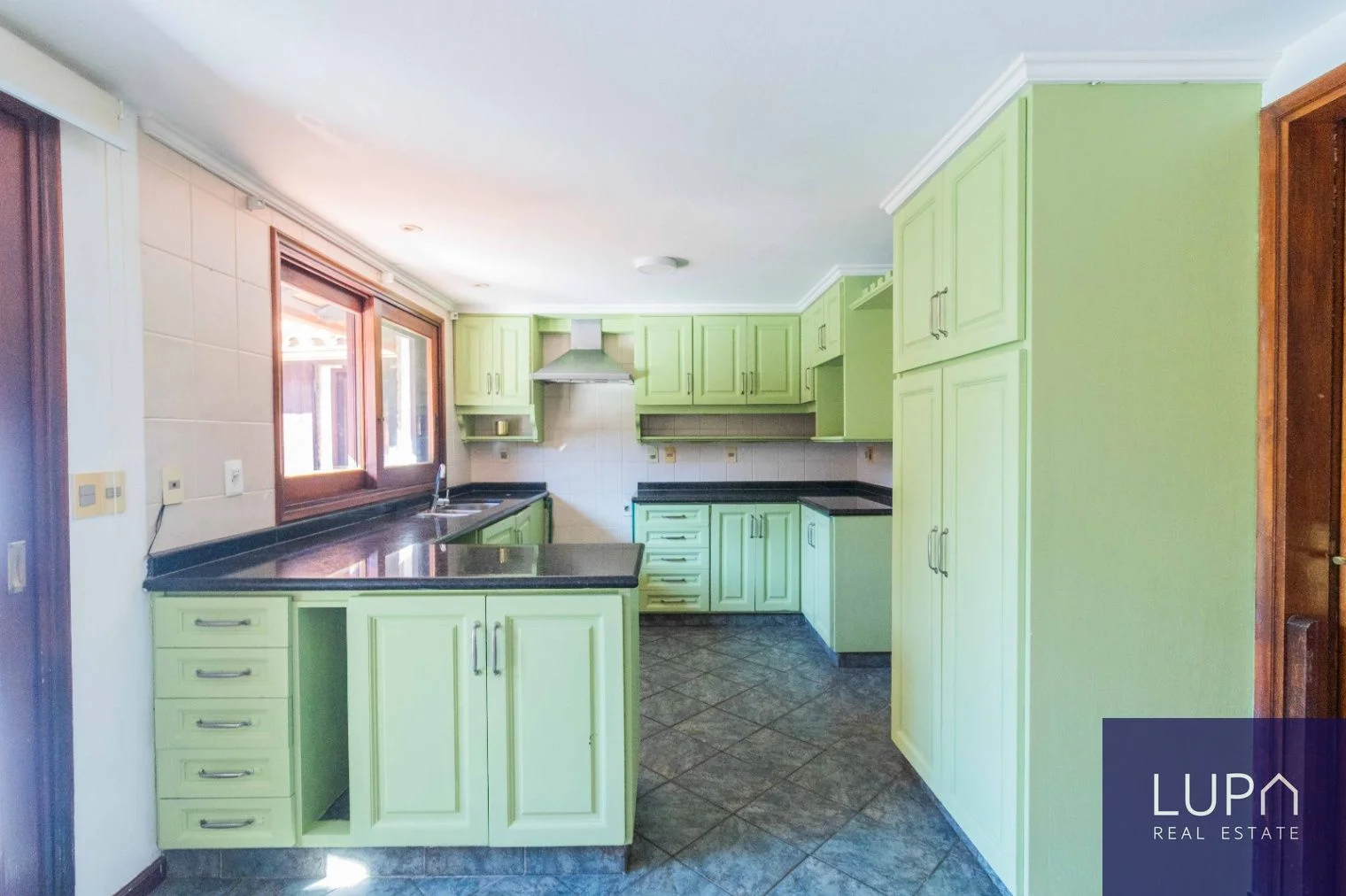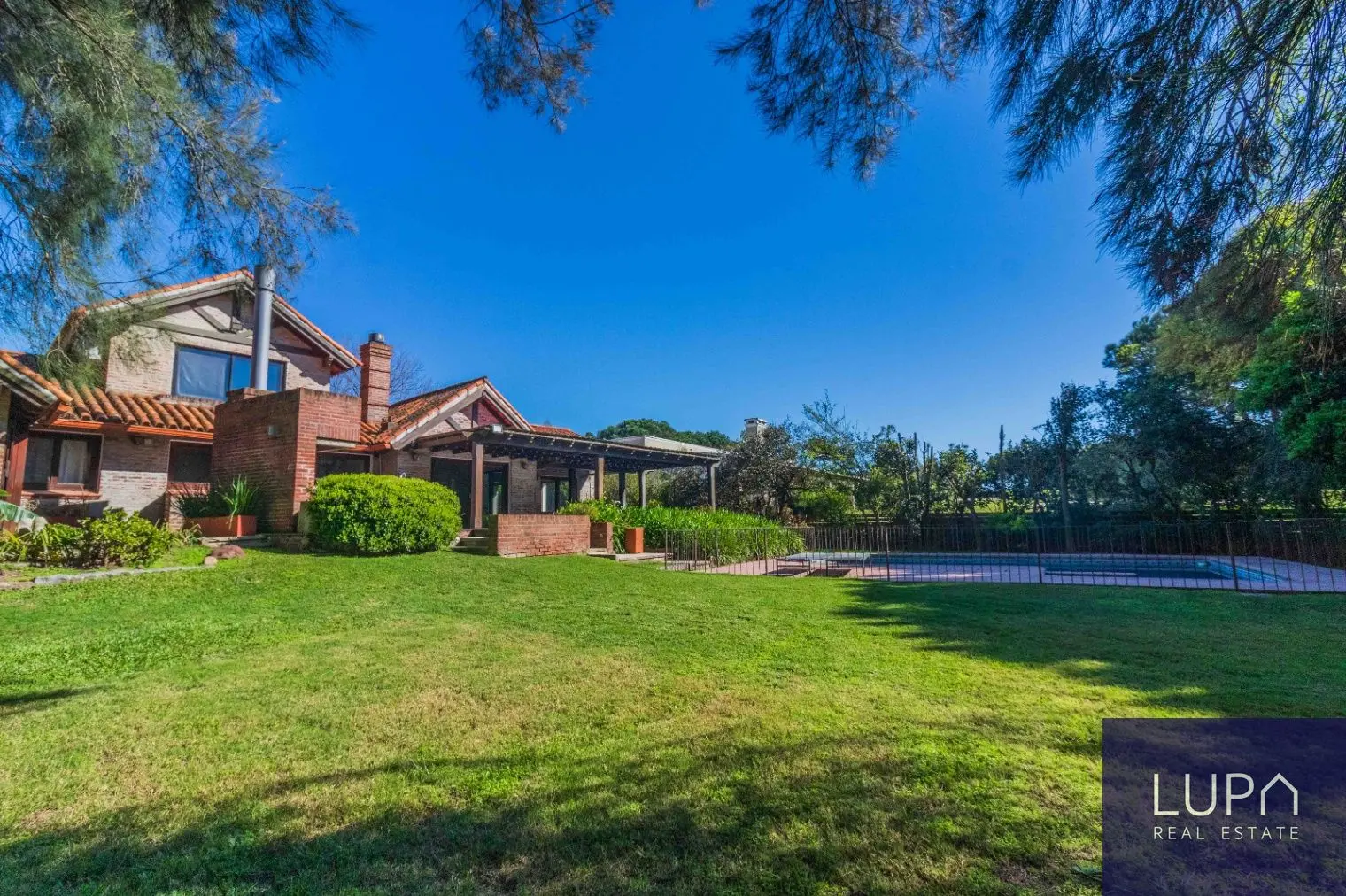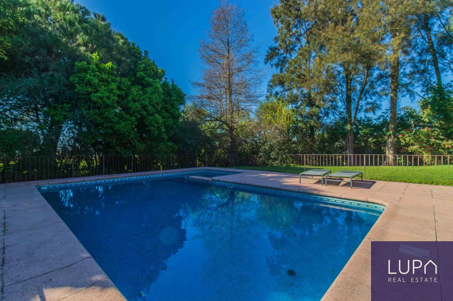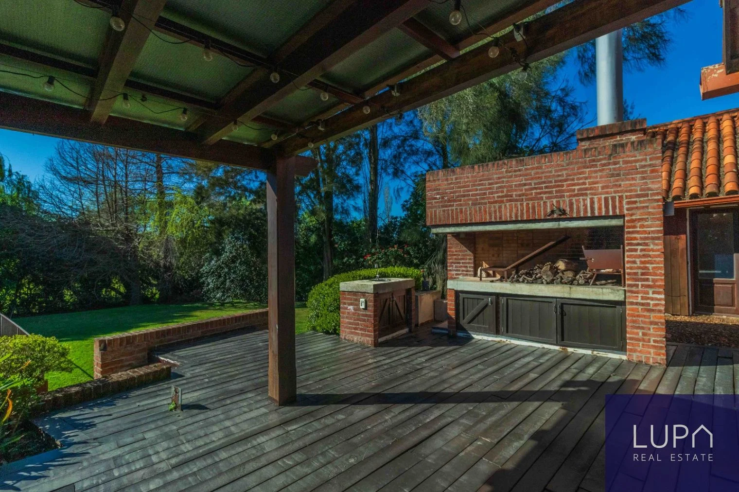 Los exteriores son igualmente atractivos: un jardín parquizado con piscina invita a disfrutar de los días soleados, mientras que el parrillero bajo pérgola ofrece el espacio perfecto para reuniones sociales. La propiedad cuenta con calefacción por losa radiante a gas y seguridad permanente.
