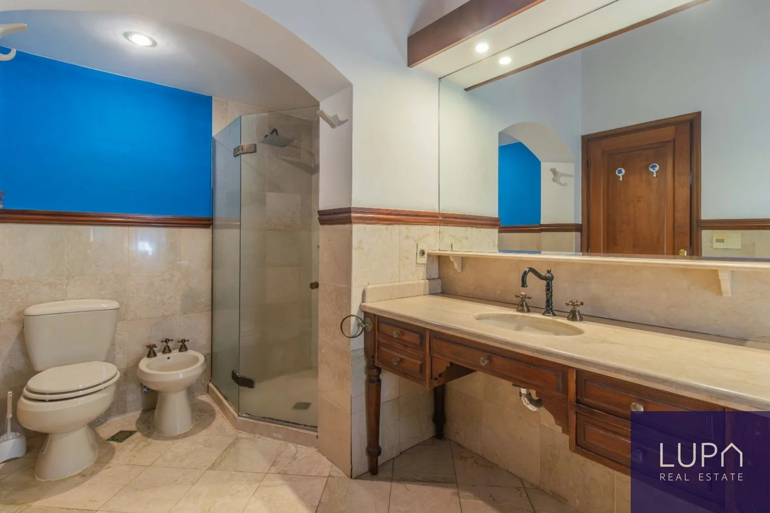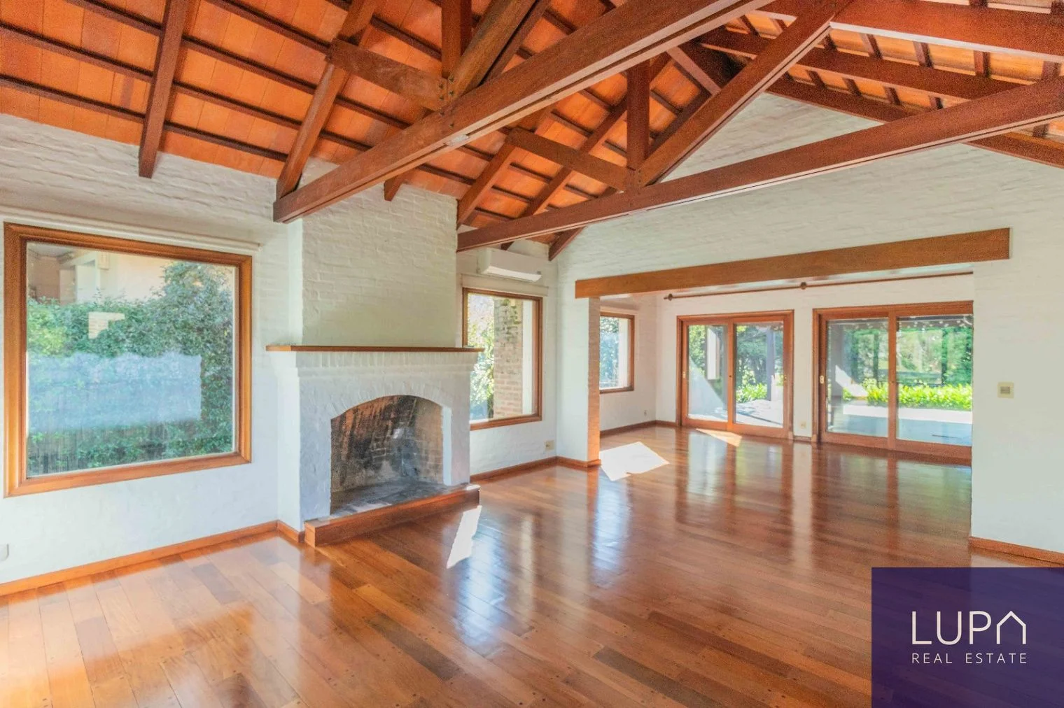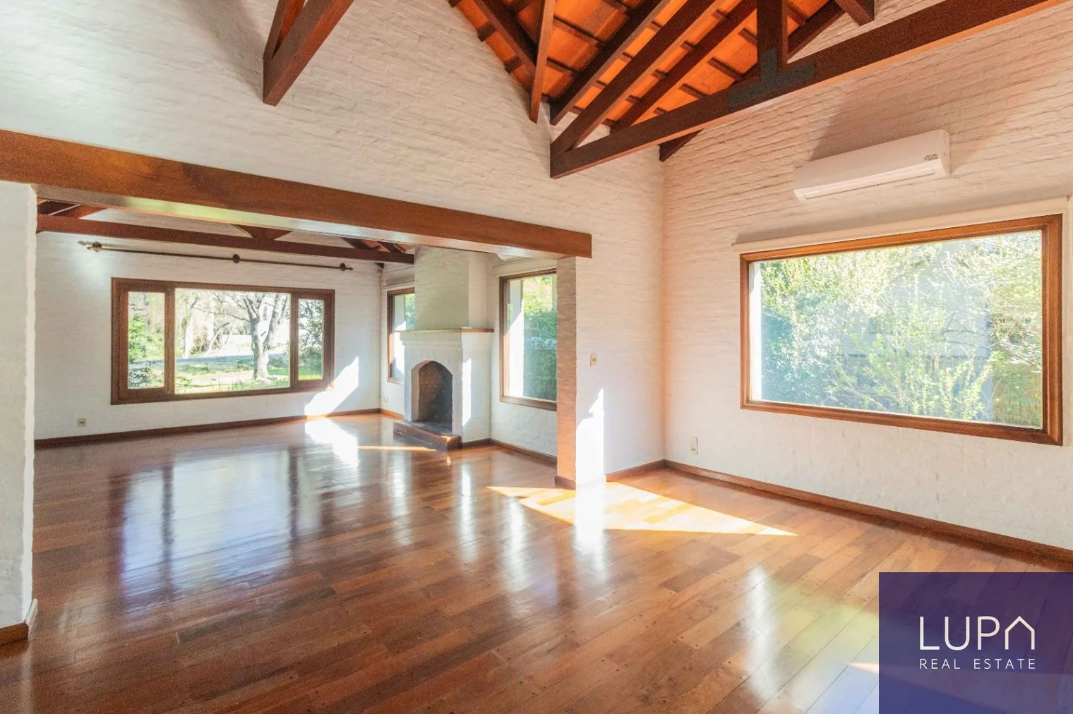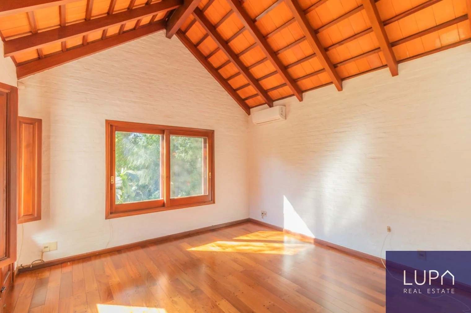 Los exteriores son igualmente atractivos: un jardín parquizado con piscina invita a disfrutar de los días soleados, mientras que el parrillero bajo pérgola ofrece el espacio perfecto para reuniones sociales. La propiedad cuenta con calefacción por losa radiante a gas y seguridad permanente.