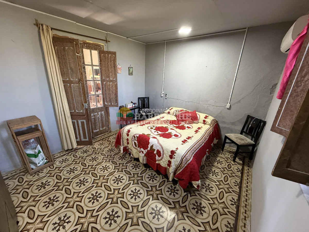 Casa de material con planchada en su mayoría, y techo liviano con cielo raso.
