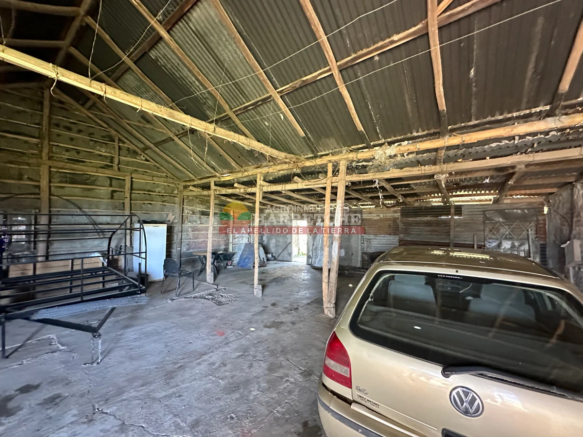 Galpón grande con portón al frente, pisos de hormigón, techos liviano con tirantearía de madera.