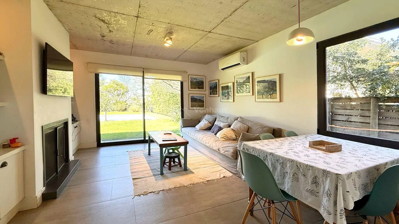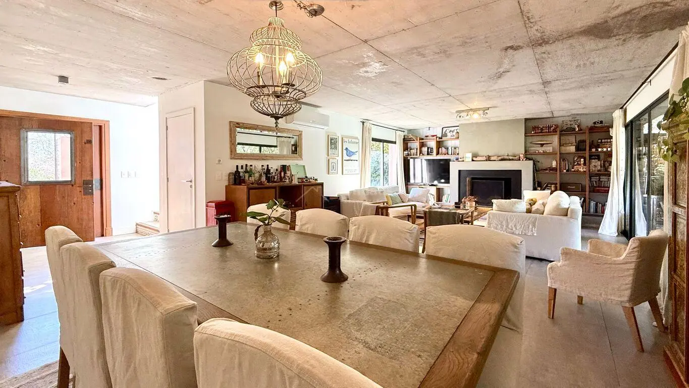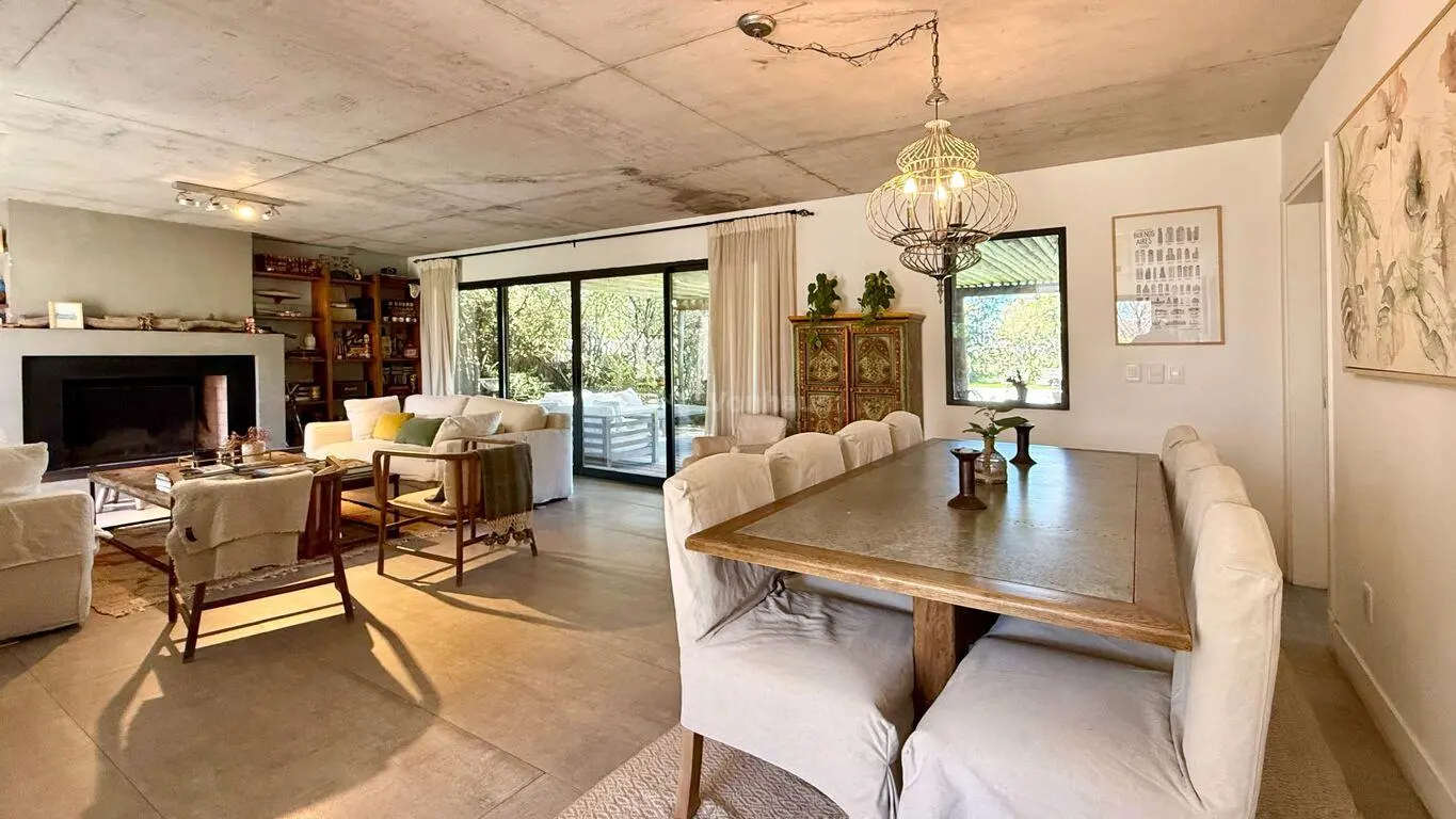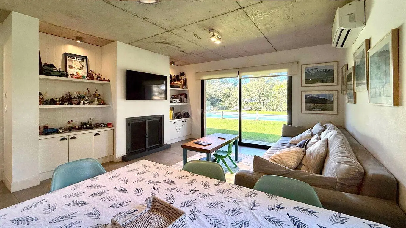 Living comedor con estufa a leña y salida a exterior