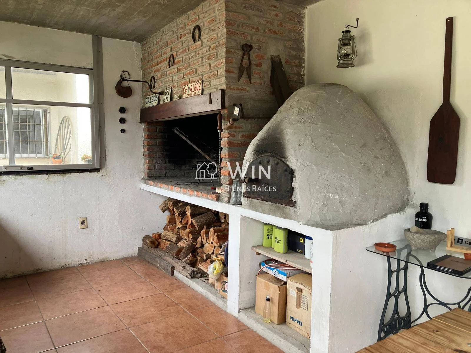 Barbacoa amplia, con horno de pan, parrilla y lugar de guardado.