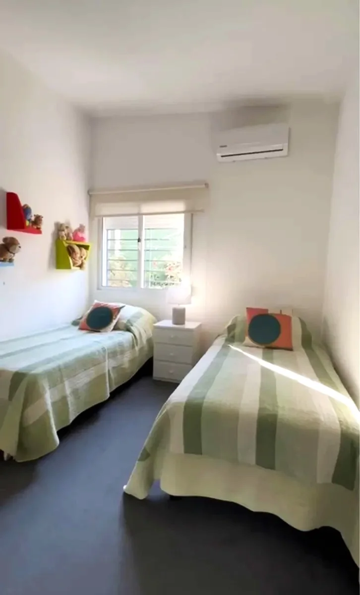 La zona íntima cuenta con un dormitorio principal en suite con placares a medida, dos dormitorios adicionales, baño completo y baño social. Todos los ambientes tienen aire acondicionado.