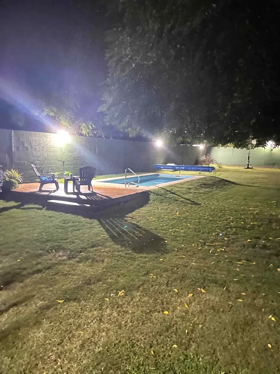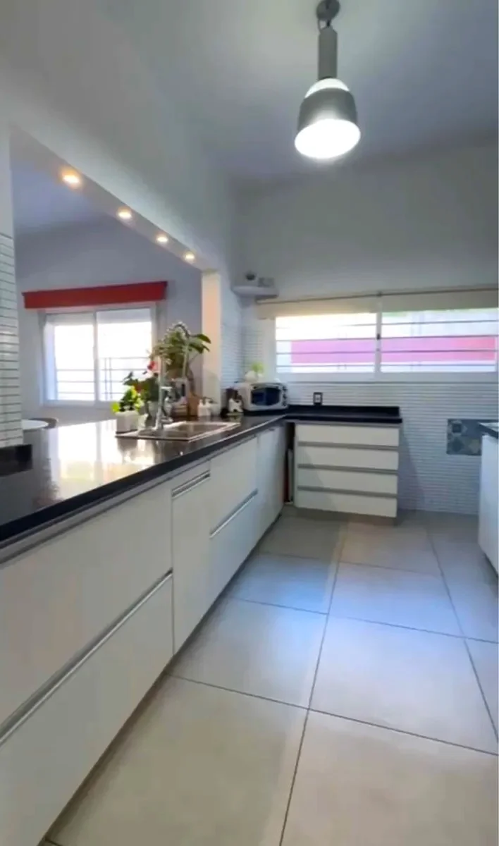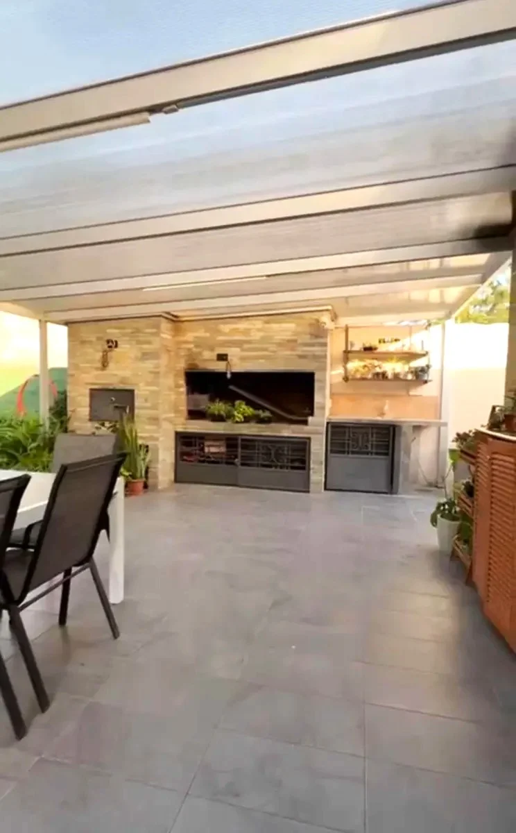 En el exterior se encuentra un gran fondo con barbacoa techada, living con fogón y piscina salinizada. Dispone de cochera para dos autos, portón automatizado, riego, cámaras de seguridad y galpón depósito.