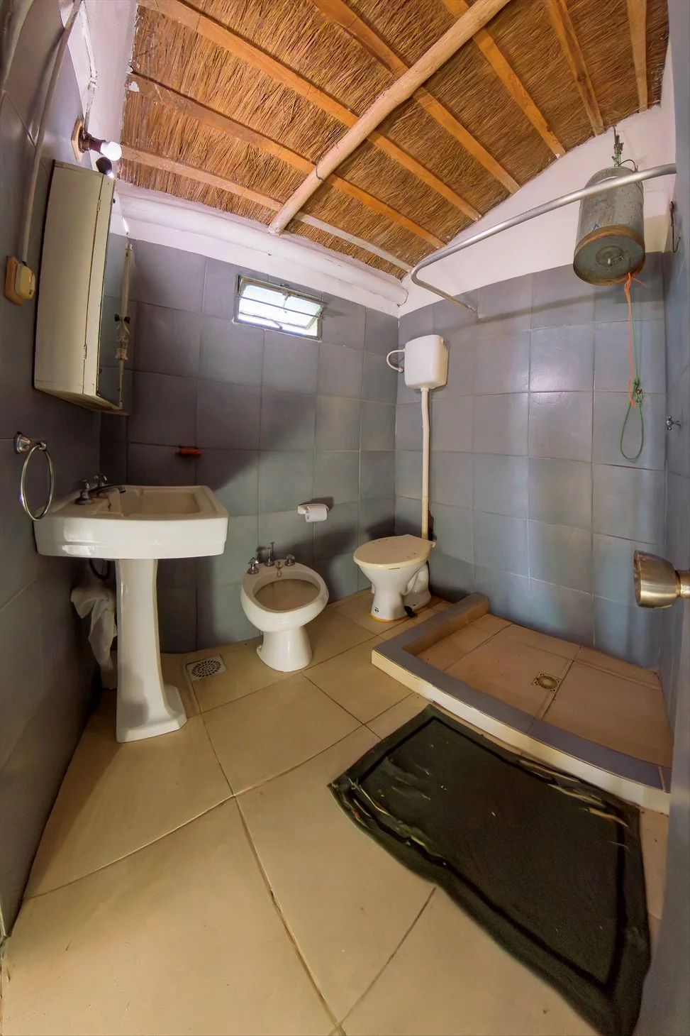 El agua se extrae de un brocal con bomba y la luz es con paneles solares.