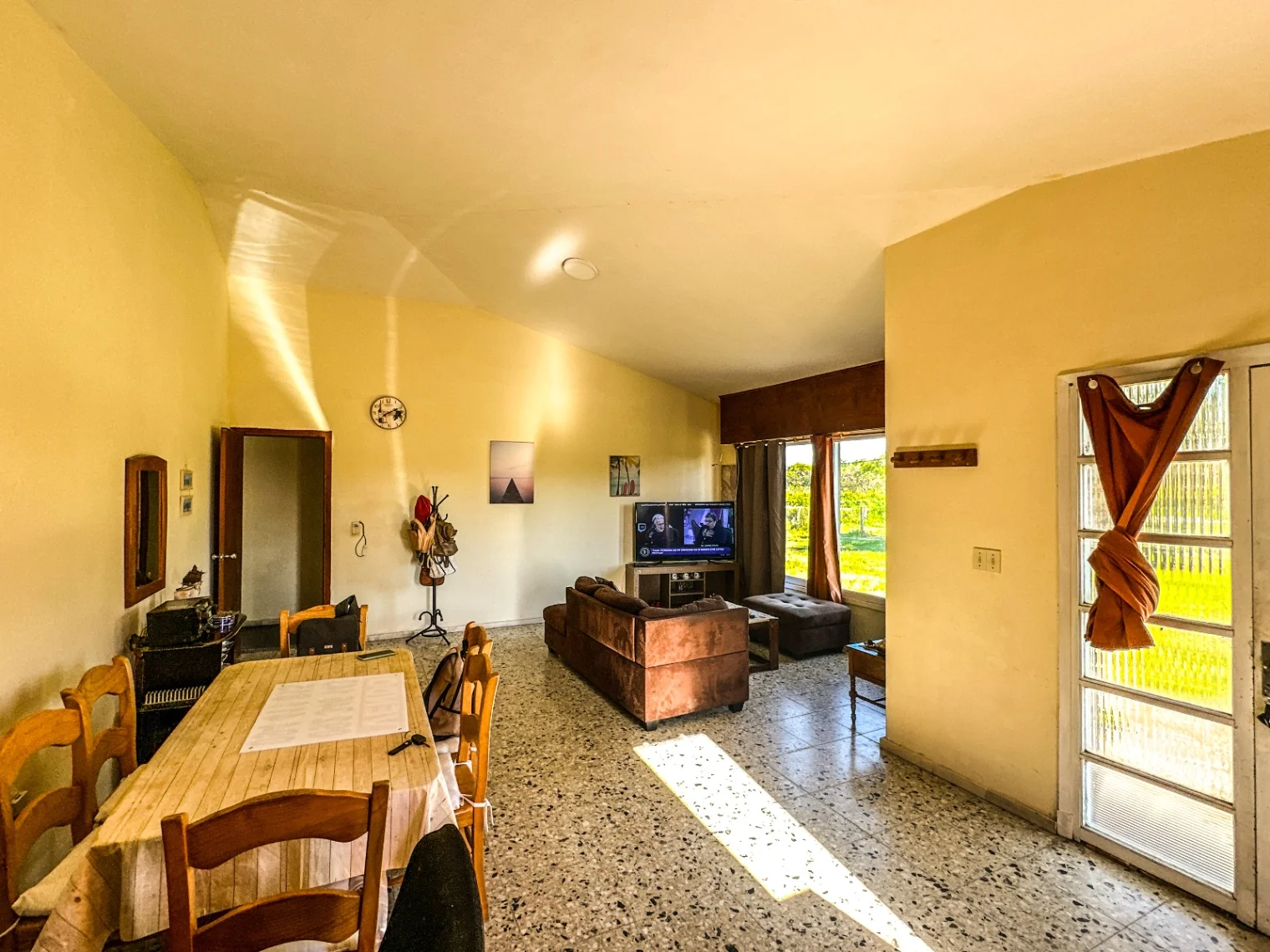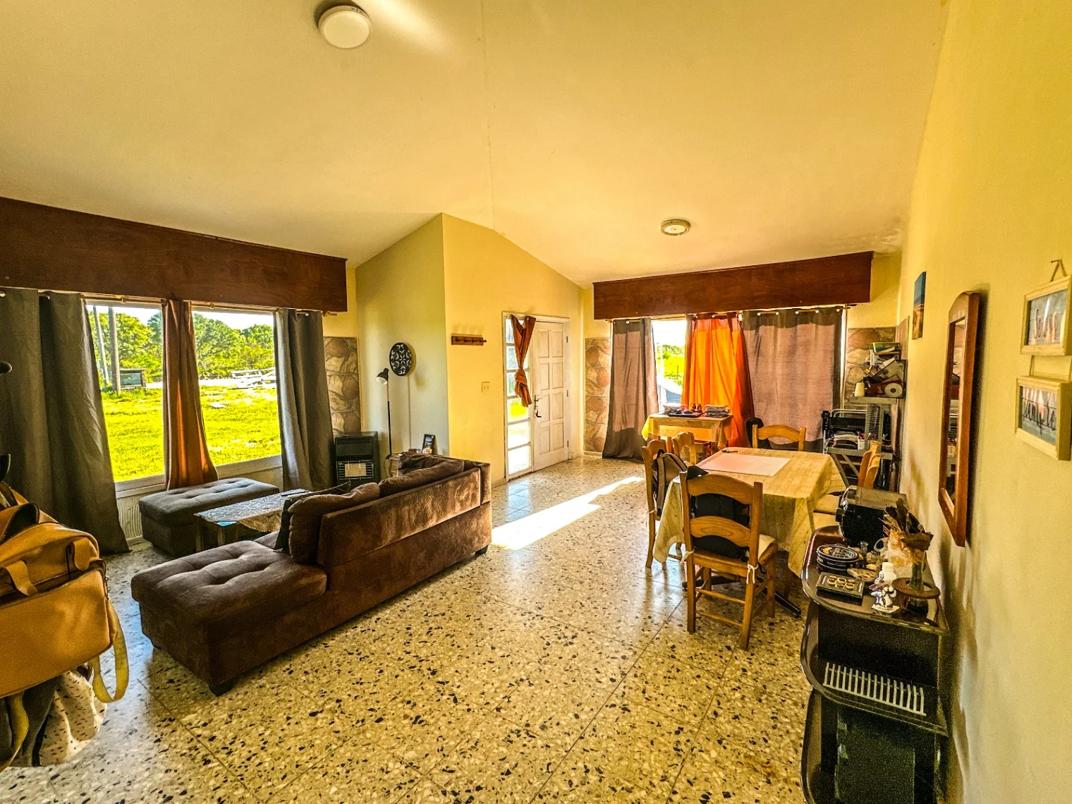 La residencia se compone de 3 dormitorios, 2 baños y una cocina funcional, complementada por un amplio living comedor que incluye chimenea, placares y conexión para lavarropas. El exterior de la propiedad es igualmente impresionante, con un galpón que anteriormente funcionó como bodega, un hermoso jardín, un quincho y espacio verde perfecto para disfrutar de momentos al aire libre. Buena iluminación nocturna. La seguridad está garantizada por un alambrado perimetral y un camino vecinal seguro, mientras que la cercanía a la costa (5 km) y la salida a ruta asfaltada a solo 500 metros brindan un acceso inmejorable a servicios y actividades recreativas.