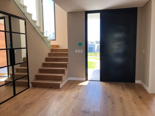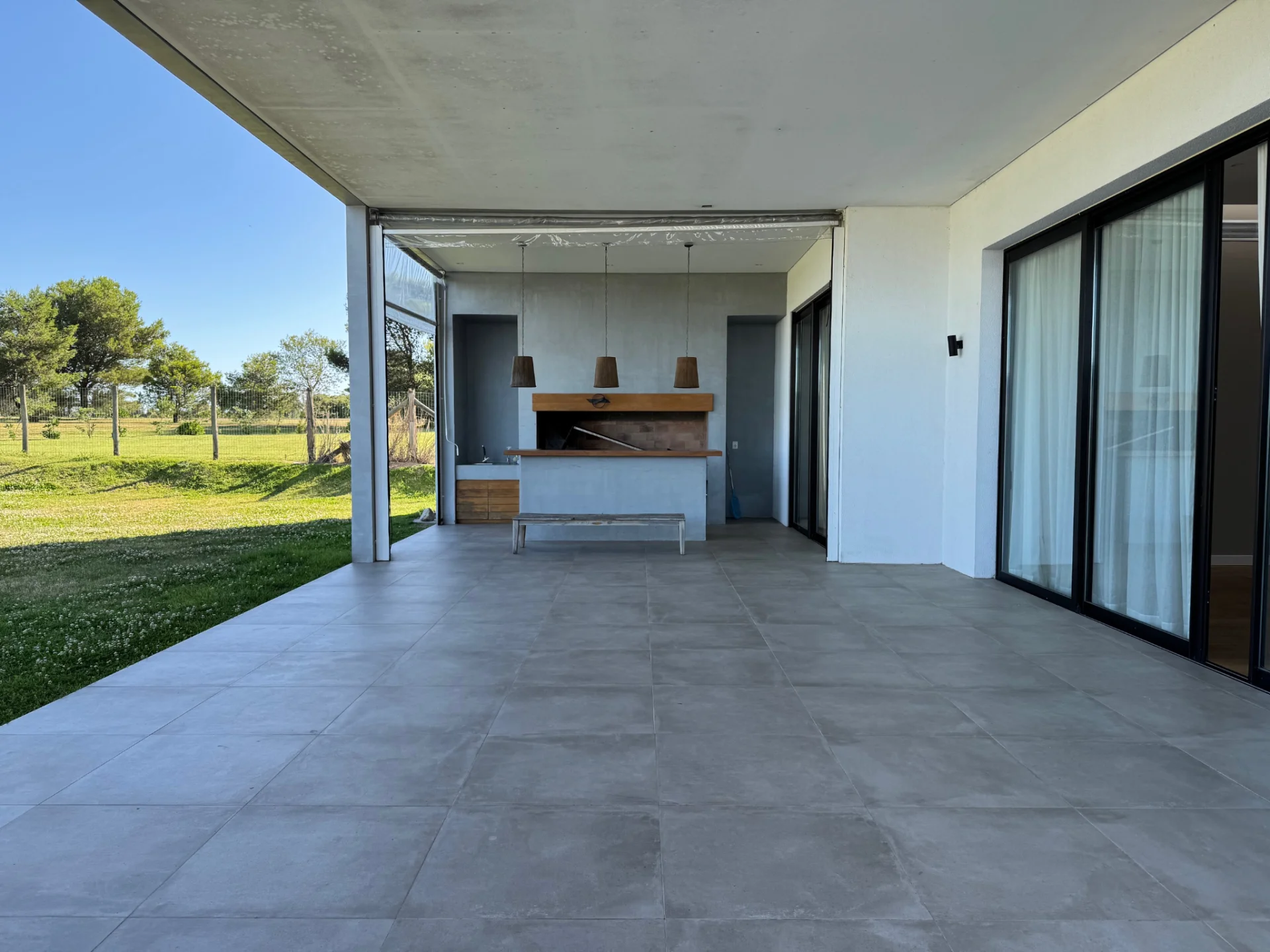 En la Planta Baja, un elegante porche da paso a un hall de entrada con despojador, que conduce a un amplio living comedor con estufa, inteligentemente conectado a un estar. Todos estos espacios se abren a una magnífica terraza trasera, ideal para el entretenimiento, equipada con parrillero y barra. La cocina, con su moderna isla, cuenta con entrada de servicio a través del lavadero, servicio completo y depósito. Un toilette de visitas añade practicidad. El dormitorio principal es una suite de ensueño, con dos vestidores y un baño compartimentado que garantiza privacidad y comodidad.