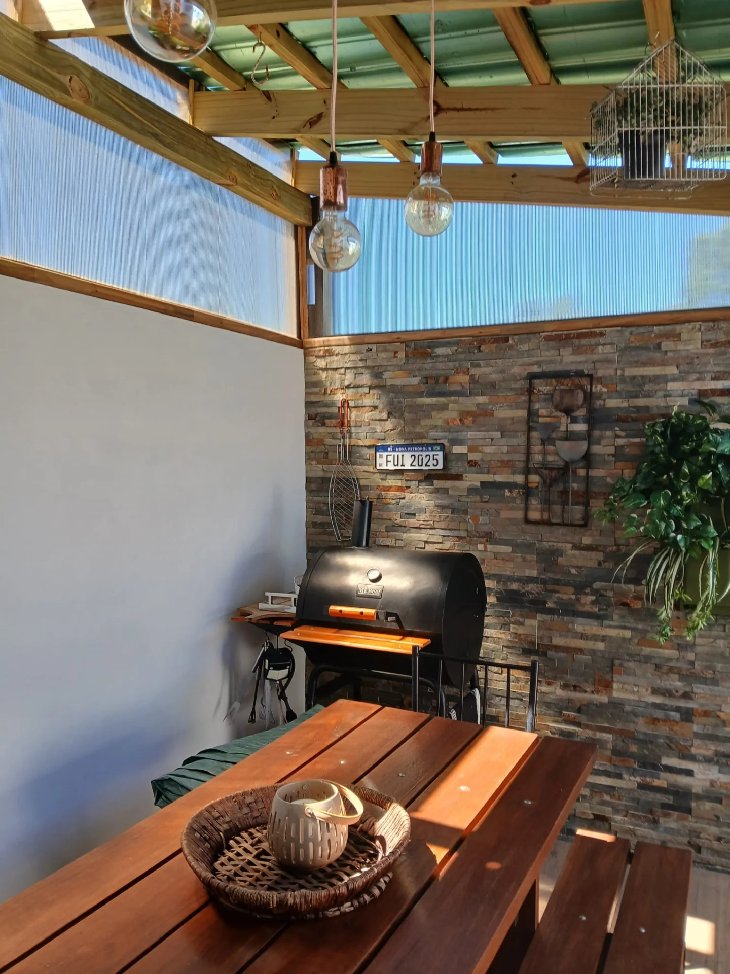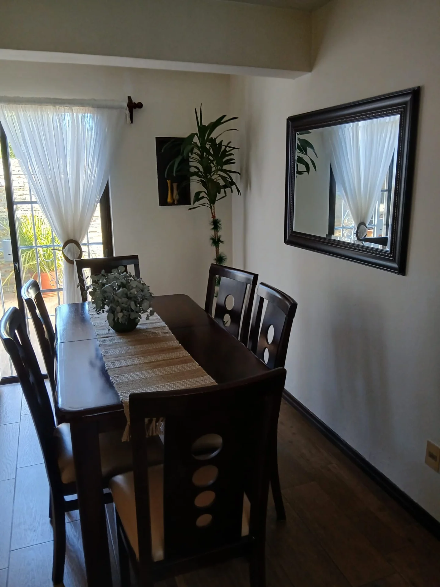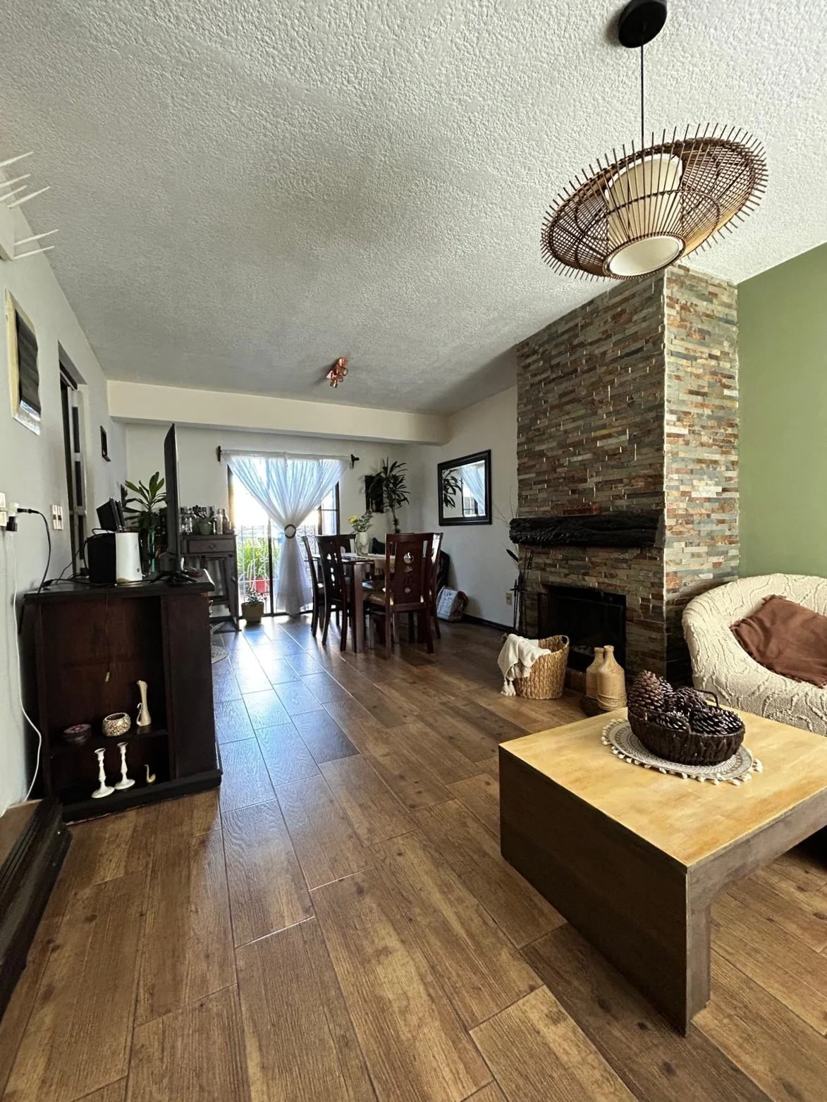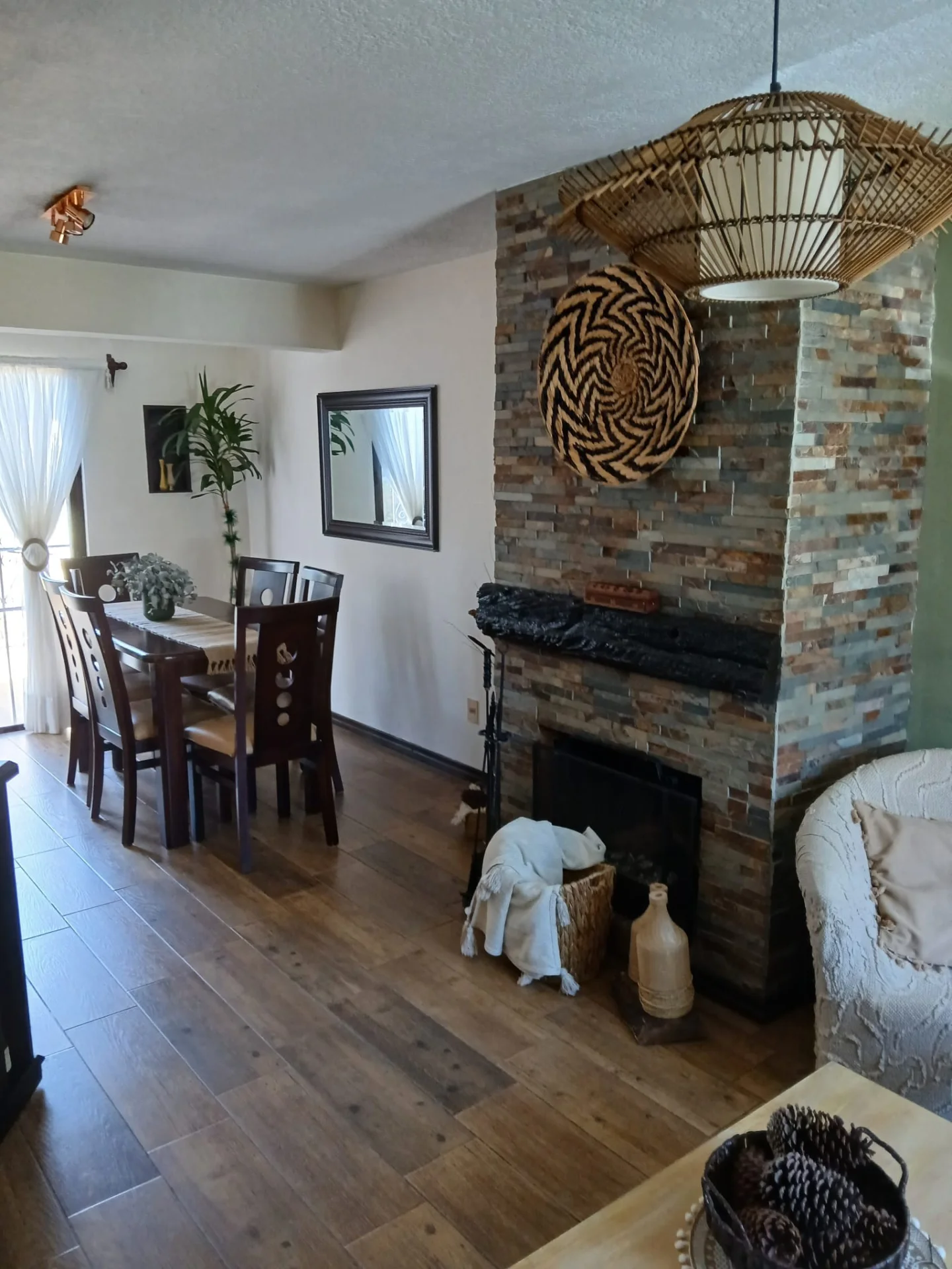 En planta baja posee un espacioso living comedor con estufa leña y muy linda entrada de luz por su orientación norte. La cocina es definida, tiene buen espacio de almacenamiento y salida al patio. El patio, semi techado, es muy disfrutable y acogedor.