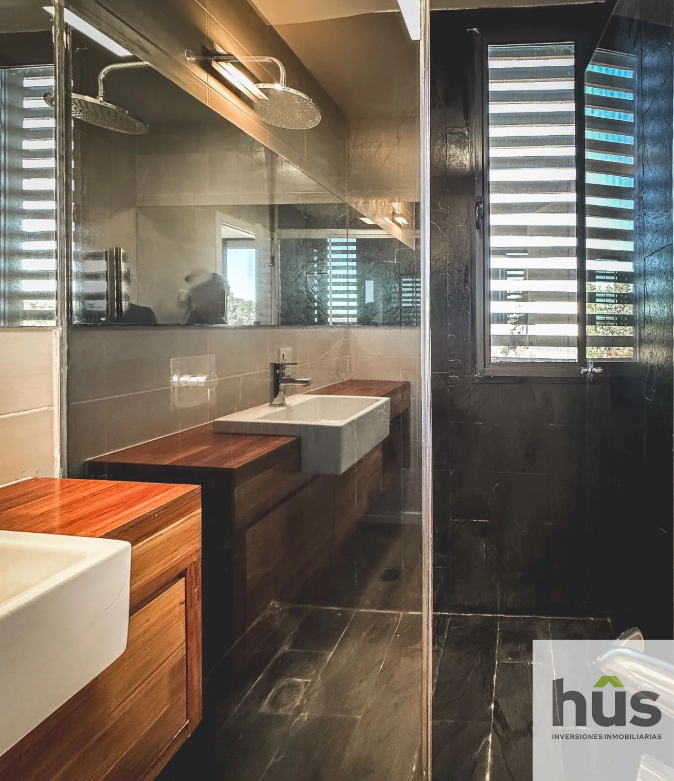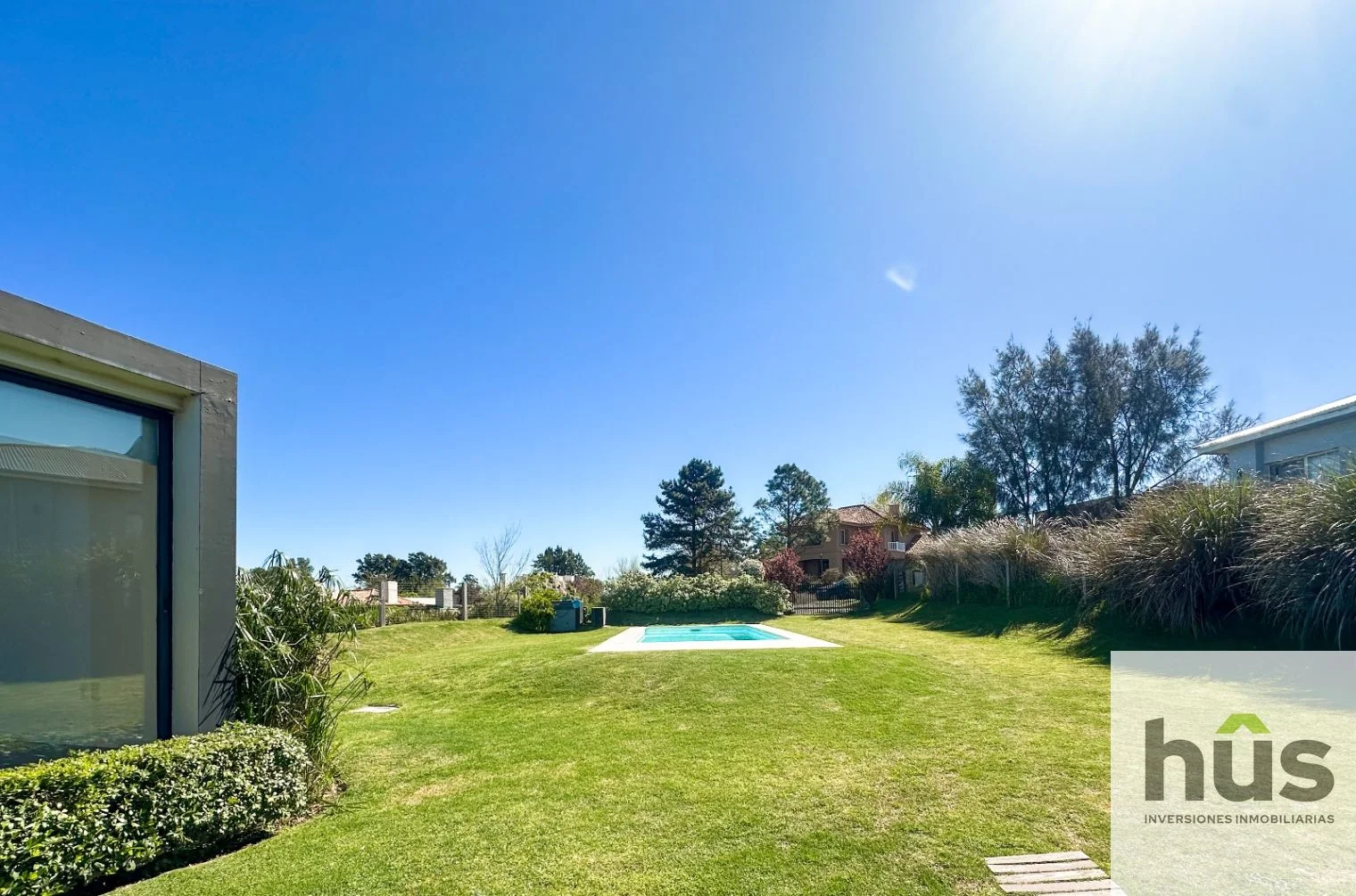Muy linda casa en una planta en La Tahona que se caracteriza por su luz y practicidad. La casa esta en muy buen estado con pisos y baños hechos nuevos. Con un amplio jardín super privado y disfrutable al frente con orientación oeste, piscina climatizada con agua salada y al fondo con orientación este. Living comedor con estufa a leña y salida hacia el fondo con divina vista. 3 dormitorios, 2 de ellos en suite. Cocina muy amplia con isla, patio interno techado. Salida lateral hacia jardin, tender y lavadero. Calefaccion por losa eléctrica de Eurocable y AA en todos los ambientes. Agua cliente 2 Calefones grandes. Porton eléctrico. Persianas eléctricas,