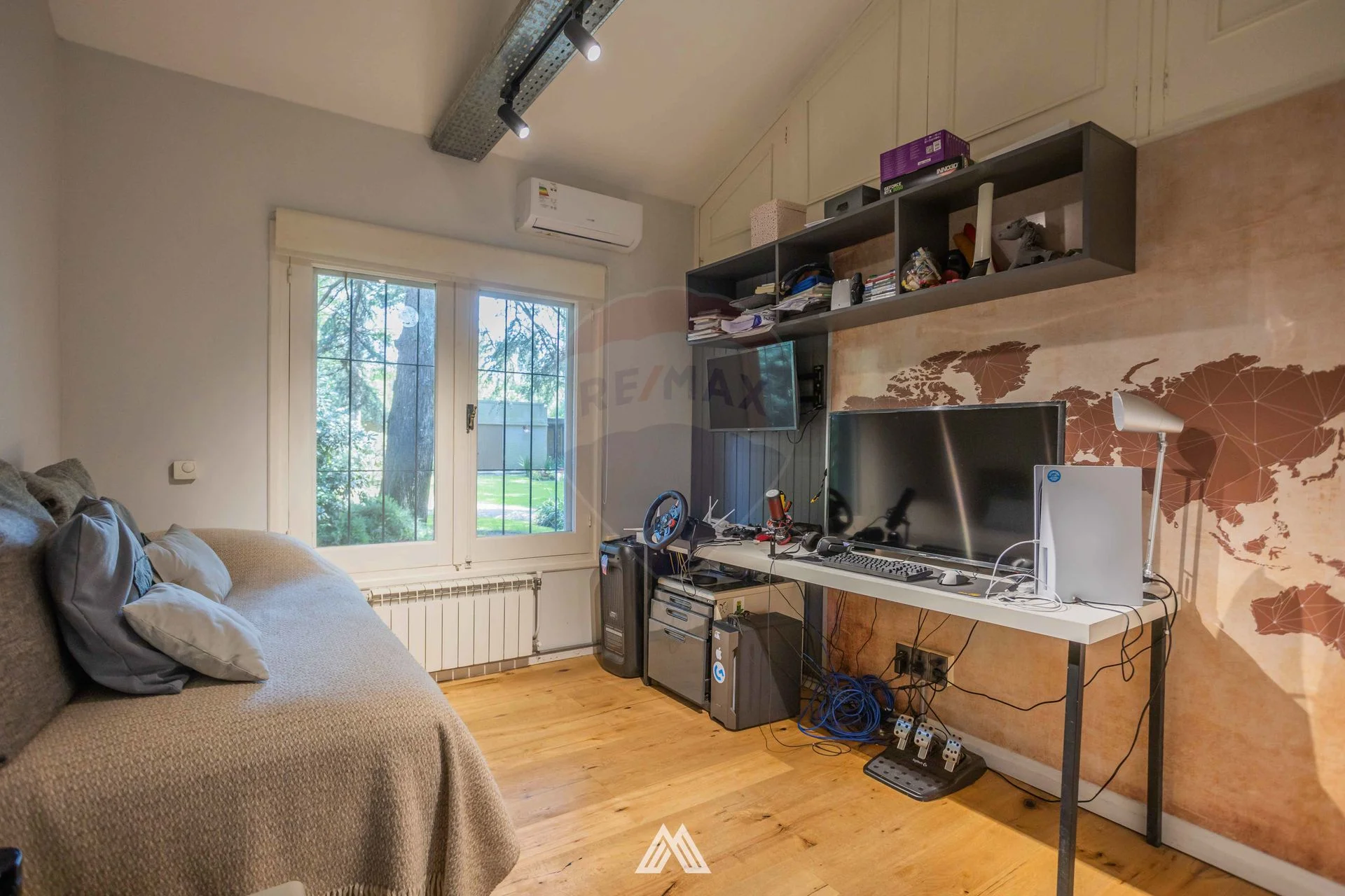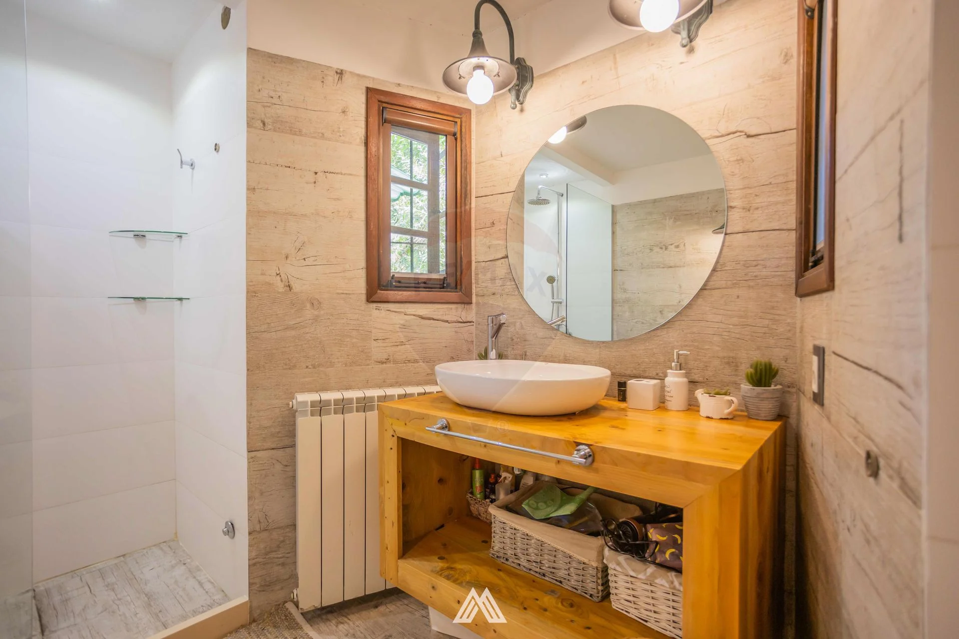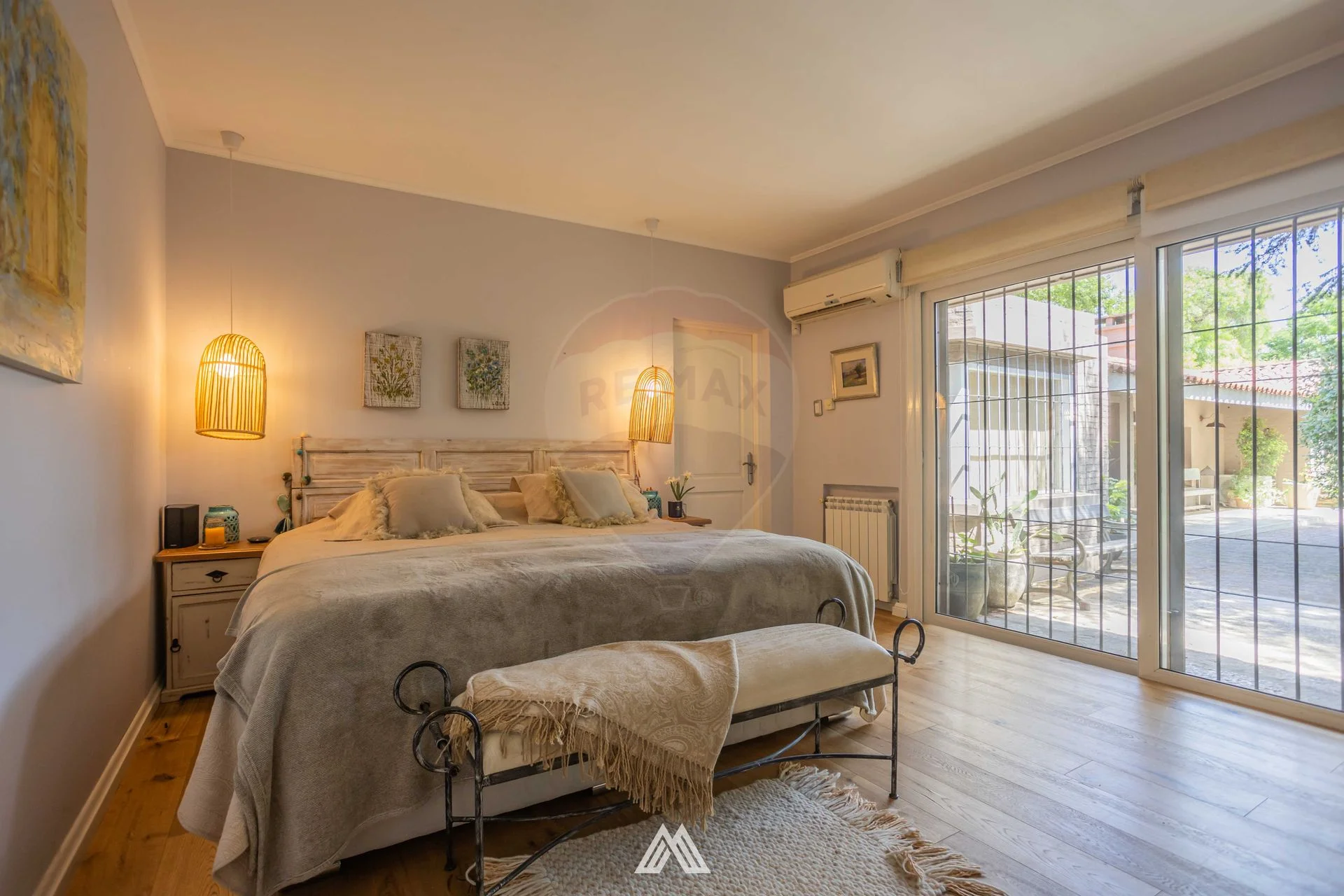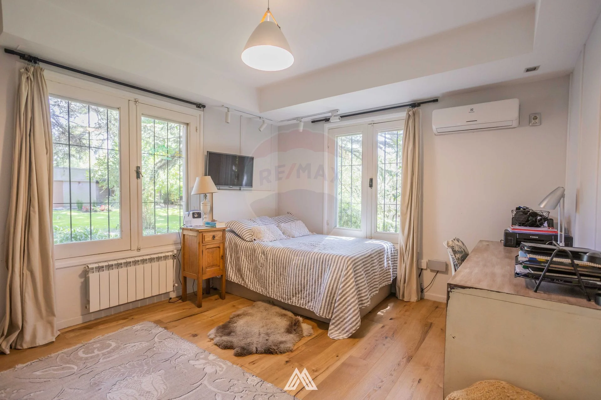 La parte intima de la casa se distribuye en tres dormitorios, el principal en suite con Jacuzzi, vestidor y estufa a leña. Los otros dos dormitorios comparten un baño completo y cuentan con un espacio de salar de estar/escritorio con ventanal al Jardín.