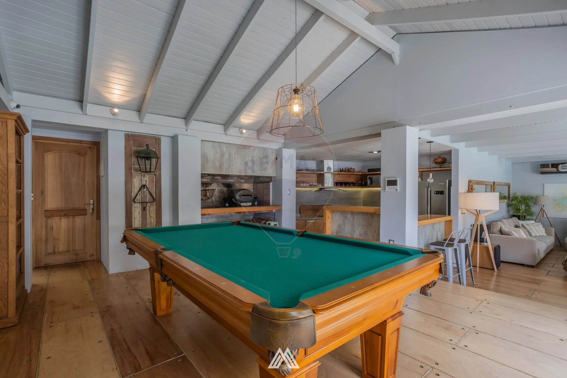 La casa tiene 346 m2 más 110 m2 de barbacoa completa con cocina, sala de estar con mesa de juegos y baño completo.
