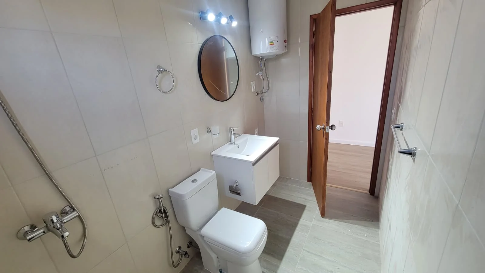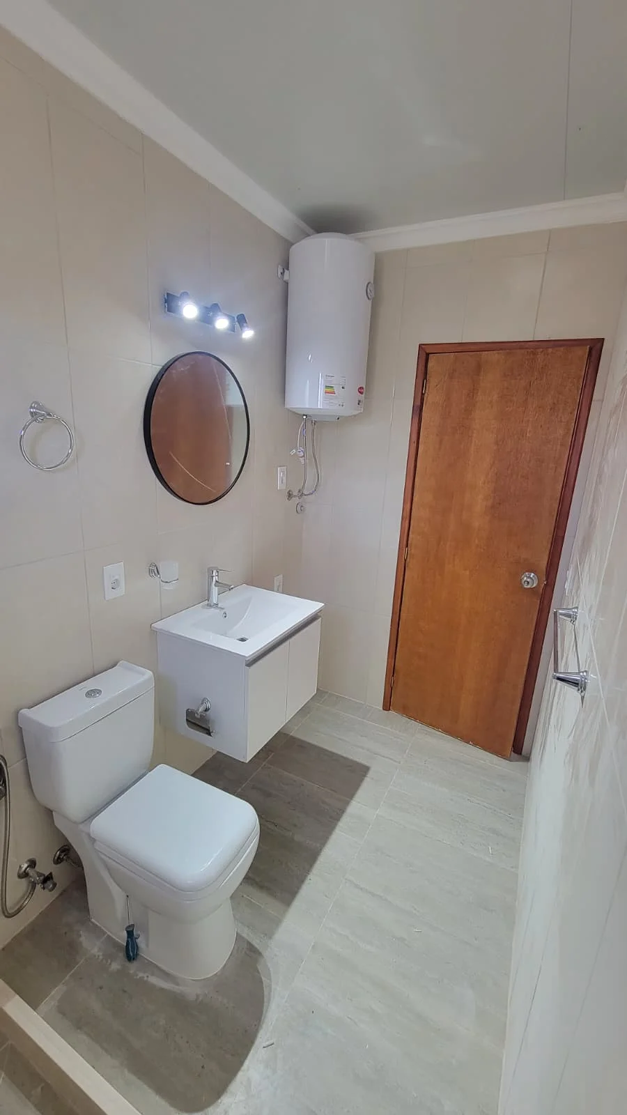 El luminoso living comedor se integra armoniosamente con una cocina de diseño, equipada con muebles aéreos y bajo mesada de gran capacidad, una amplia mesada y una campana extractora de última generación. El baño completo es un oasis de bienestar, con espejo, extractor y un calefón de 60 litros.