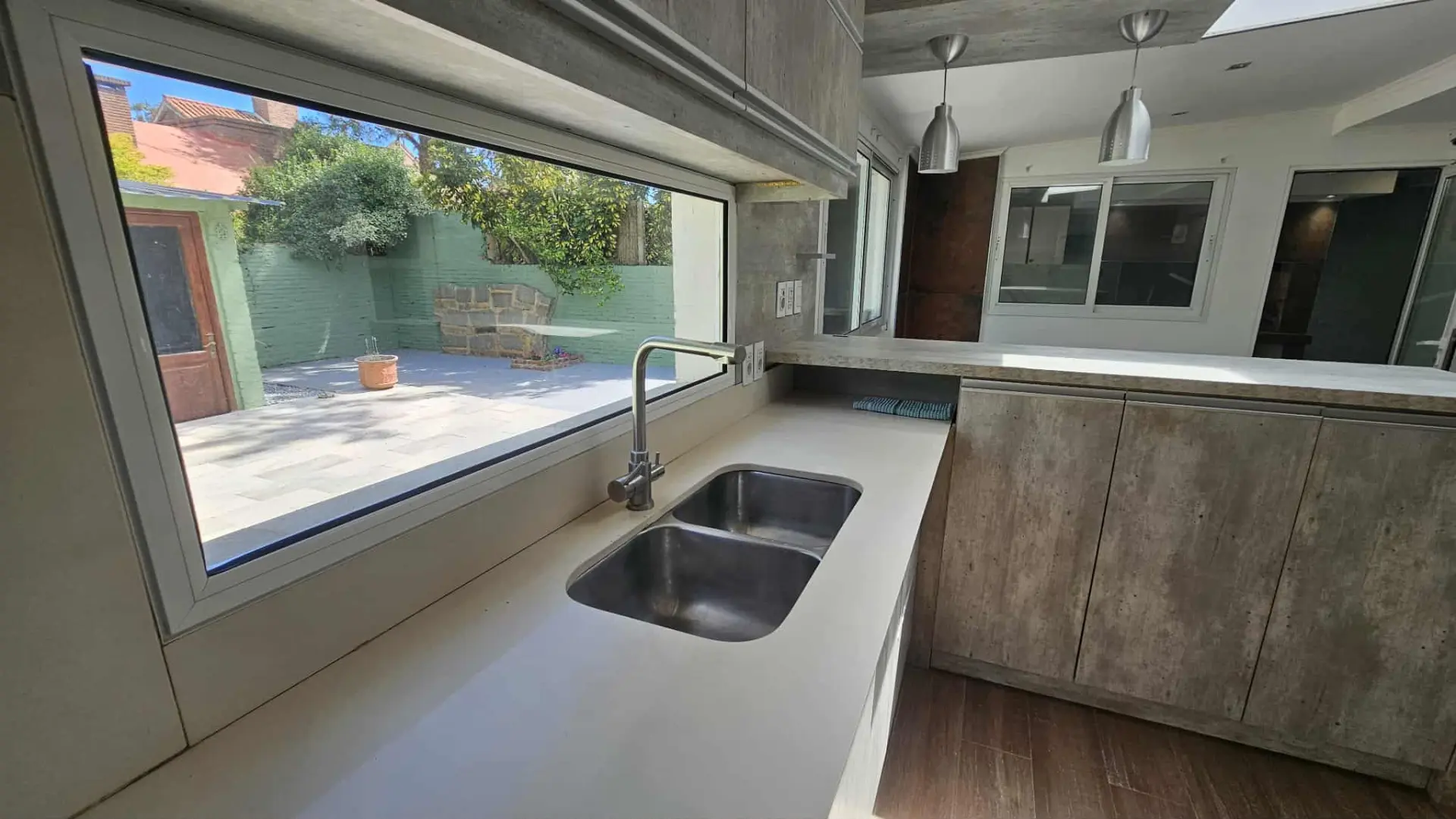Aberturas totales,menos puerta de ingreso a garaje y casa que son de madera, todas en doble vidrio en DVH con cámara de aire. Hay de aluminio anodizado negro y blanco.