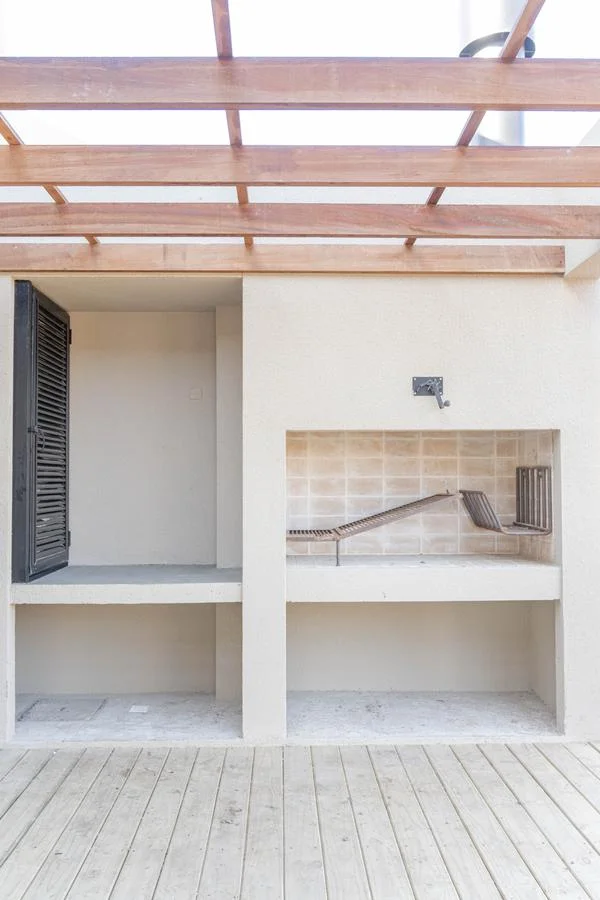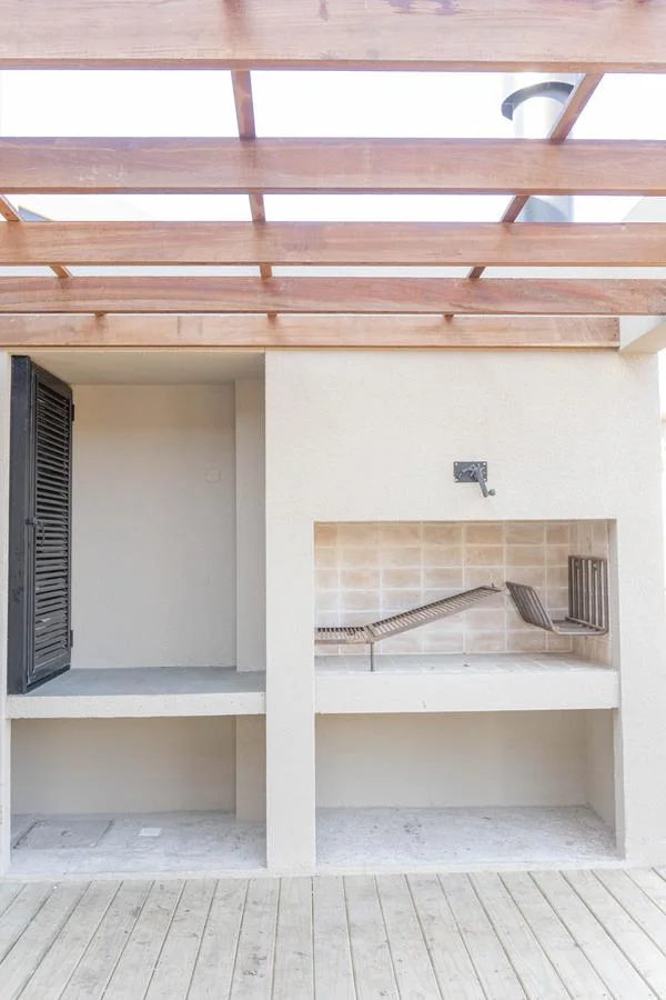 Cuenta con un amplio deck con parrillero (con herreria, pronto para estrenar), con espacio para una mesa de comedor exterior y un living exterior. Jardín con huerta de hierbas aromáticas. Calefacción de losa radiante de agua con caldereta a gas. Cerco perimetral en laterales y fondo. Luminarias exteriores en paredes