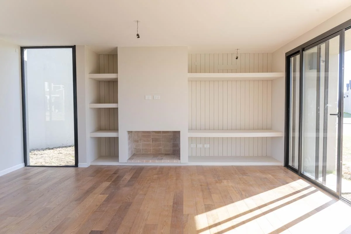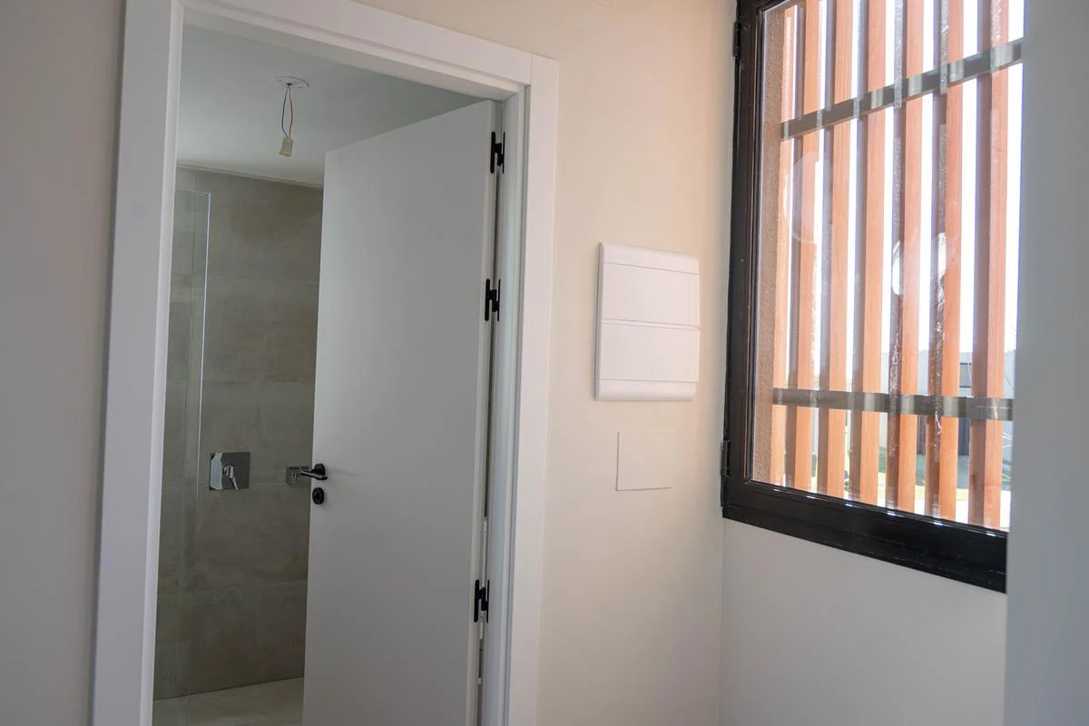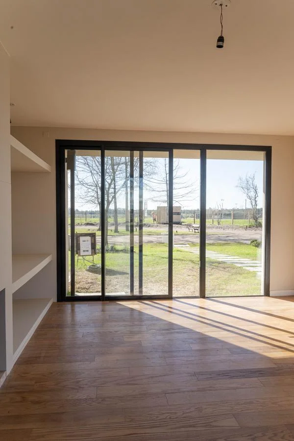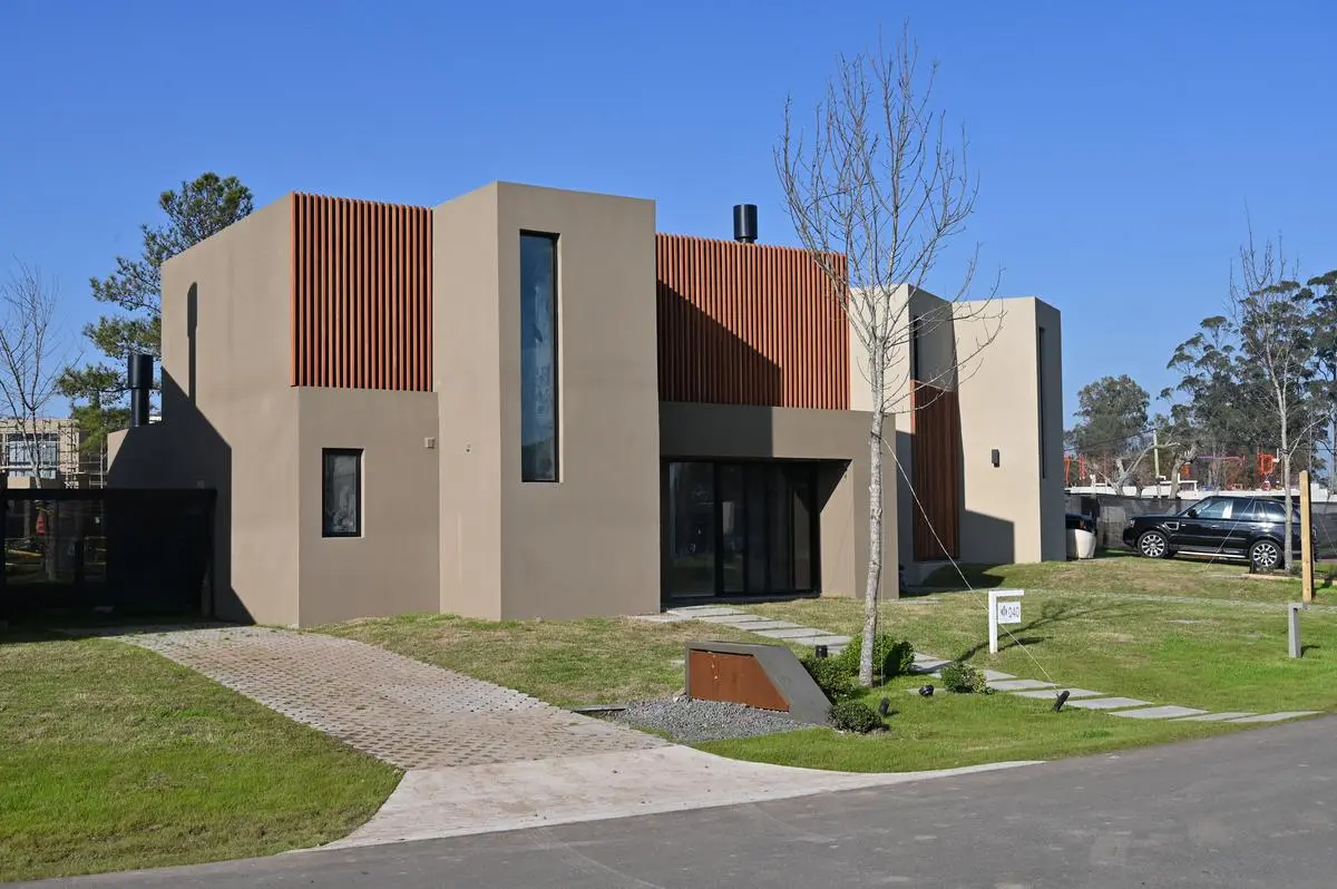 La casa se desarrolla en 2 plantas (tipologia 5). Cuenta en planta baja con living con estufa a leña tradicional, comedor con cocina integrada (equipada con muebles bajo mesada y aéreos en melamínico, anafe a gas, horno eléctrico y campana de extracción) y baño social. En la planta alta tiene 3 dormitorios (1 en suite con vestidor,) y 2 baños (baño en suite con ducha y baño secundario con bañera).