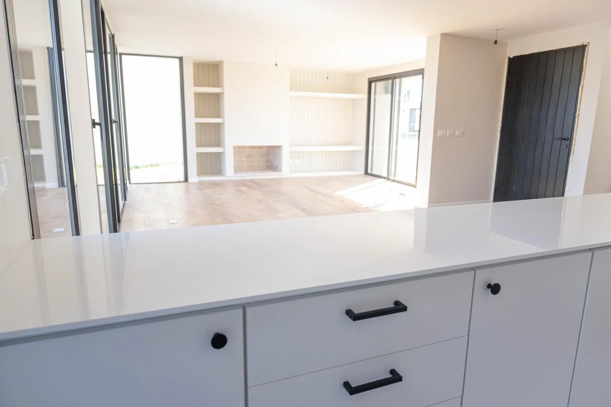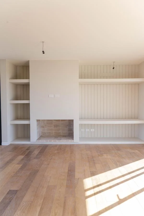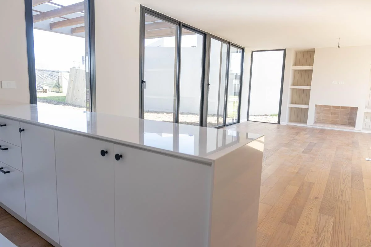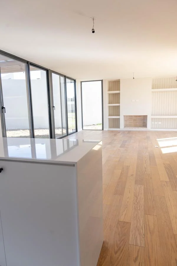 La casa se desarrolla en 2 plantas (tipologia 5). Cuenta en planta baja con living con estufa a leña tradicional, comedor con cocina integrada (equipada con muebles bajo mesada y aéreos en melamínico, anafe a gas, horno eléctrico y campana de extracción) y baño social. En la planta alta tiene 3 dormitorios (1 en suite con vestidor,) y 2 baños (baño en suite con ducha y baño secundario con bañera).