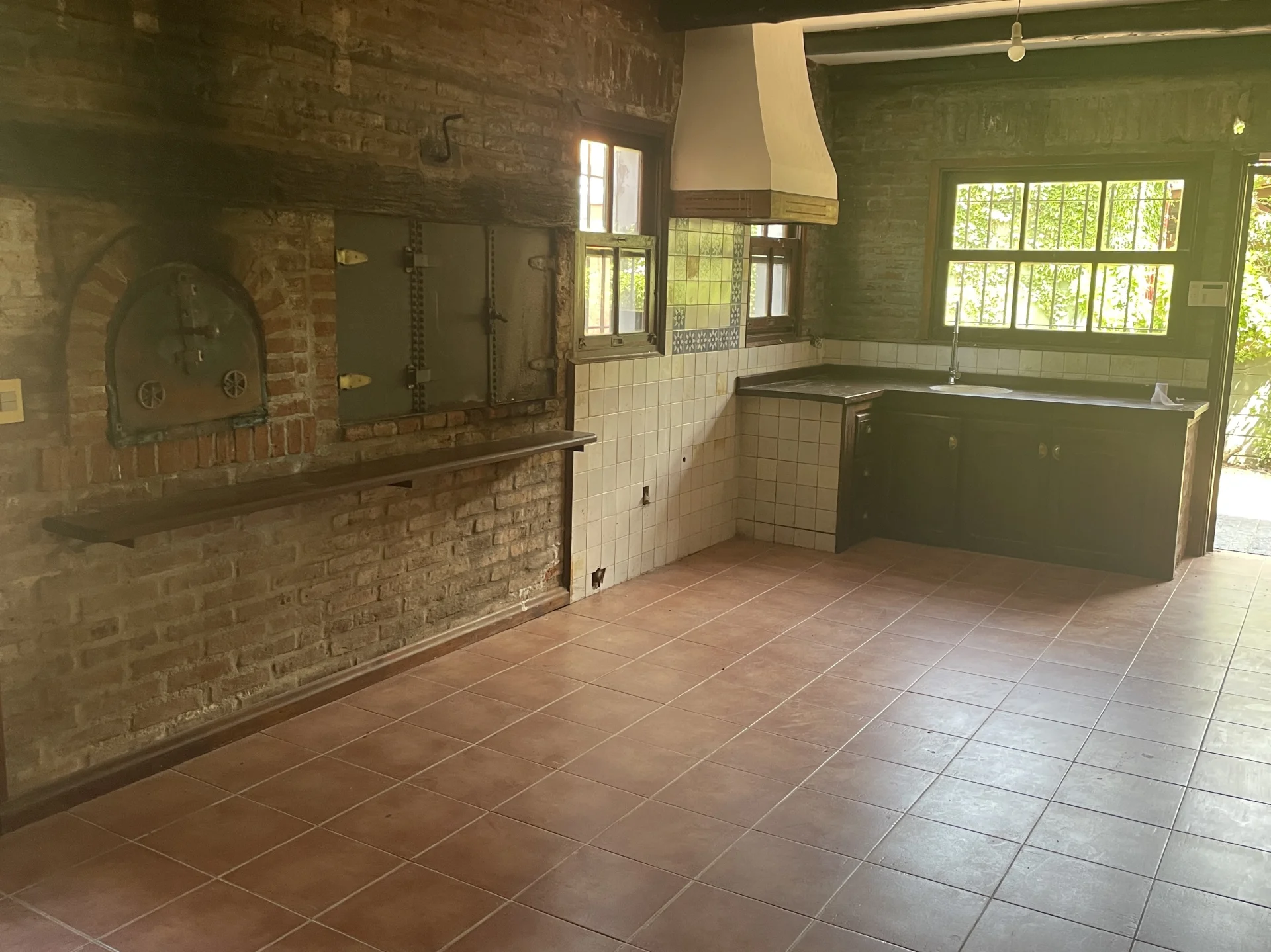 Amplia terraza con parrillero contigua a la casa.