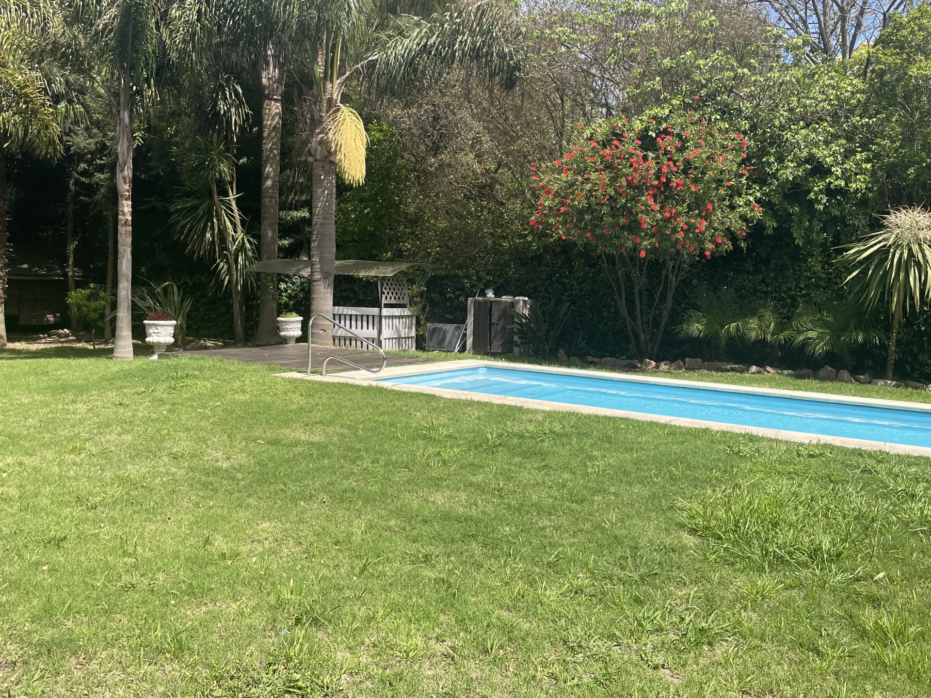 Excelente construcción, tradicional, estilo colonial, en una planta sobre 1850 mts de terreno enjardinado, con amplia piscina climatizada.
