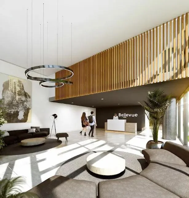 Bellevue está conformado por dos torres de 16 pisos cada una, desarrolladas bajo estándares constructivos actuales y pensadas para quienes buscan un estilo de vida moderno, con servicios y amenities de primer nivel. Entre ellos se destacan barbacoa con área de living, cowork, gimnasio completo, playroom, piscina interior y exterior climatizada, solárium, espacios verdes, seguridad, laundry, bicicletero, estación de carga eléctrica, muelle sobre el lago y vistas panorámicas únicas. Además, el proyecto ofrece kayaks para disfrutar del entorno natural que rodea al edificio.